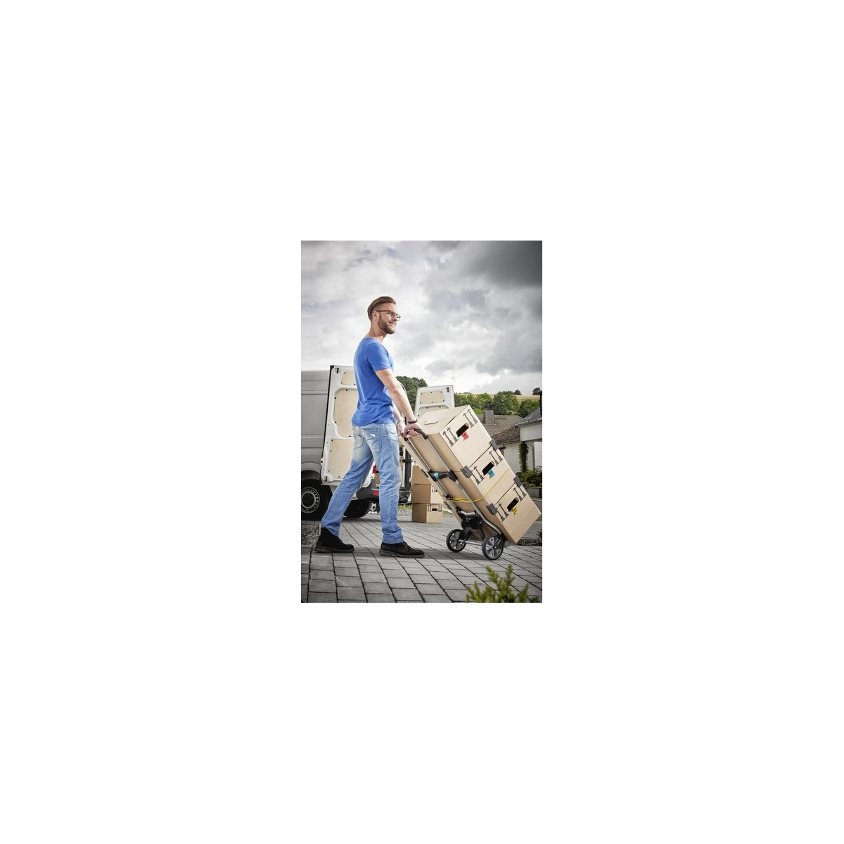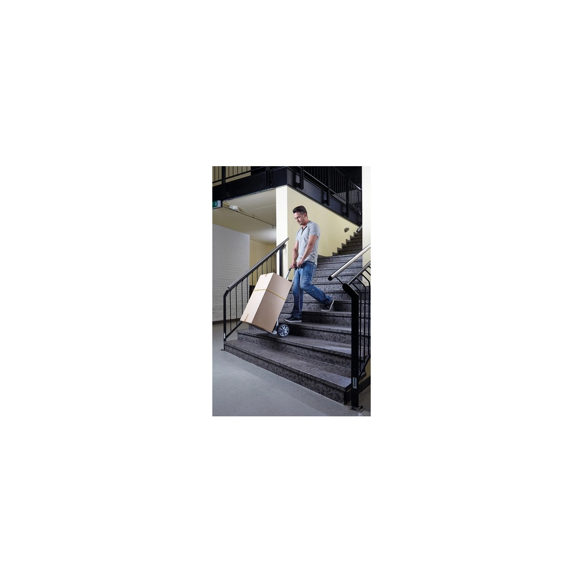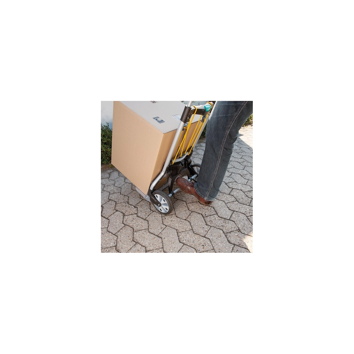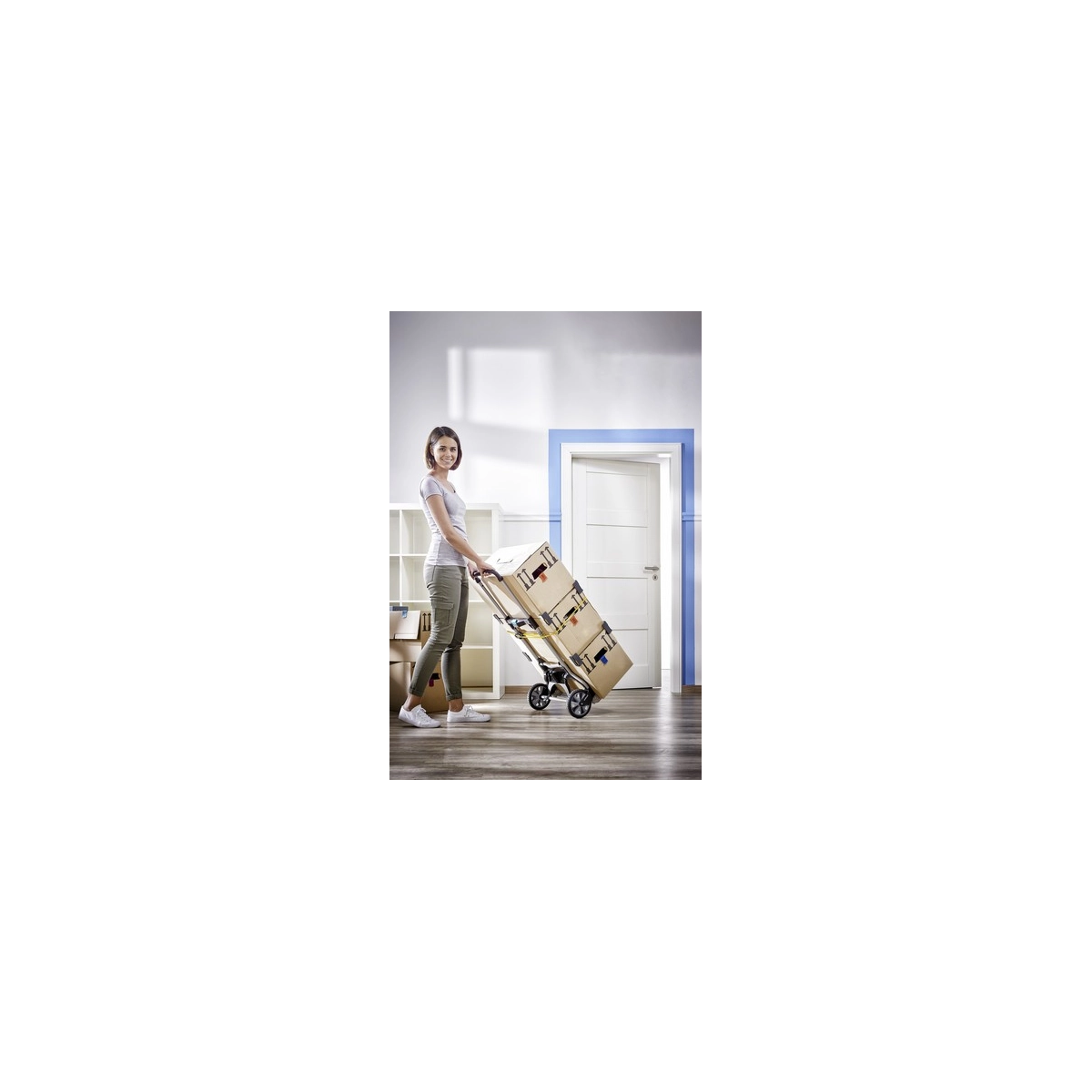 Carretilla profesional Wolfcraft TS 850 diseñada para el transporte cómodo y seguro de cargas de hasta 100 kg. Su sistema de plegado rápido y asa deslizable con botón central la convierten en la herramienta perfecta para mover cajas, muebles o materiales pesados en escaleras y exteriores sin esfuerzo.