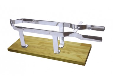 SOPORTE JAMONERO MODELO PINZA DE ACERO INOXIDABLE Y LA BASE DE MADERA