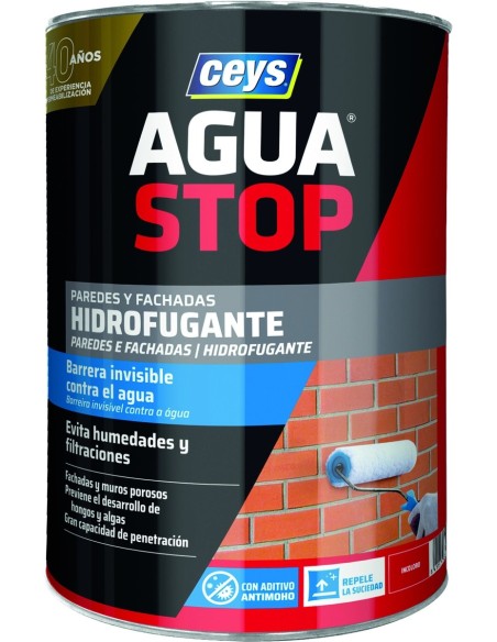 Ceys Aguastop es un hidrofugante de alta calidad con acción antimoho, diseñado para proteger tus superficies exteriores e interiores de la humedad, las filtraciones y la aparición de moho. Su fórmula avanzada repele el agua, evitando daños en tus fachadas, terrazas, baños y más.