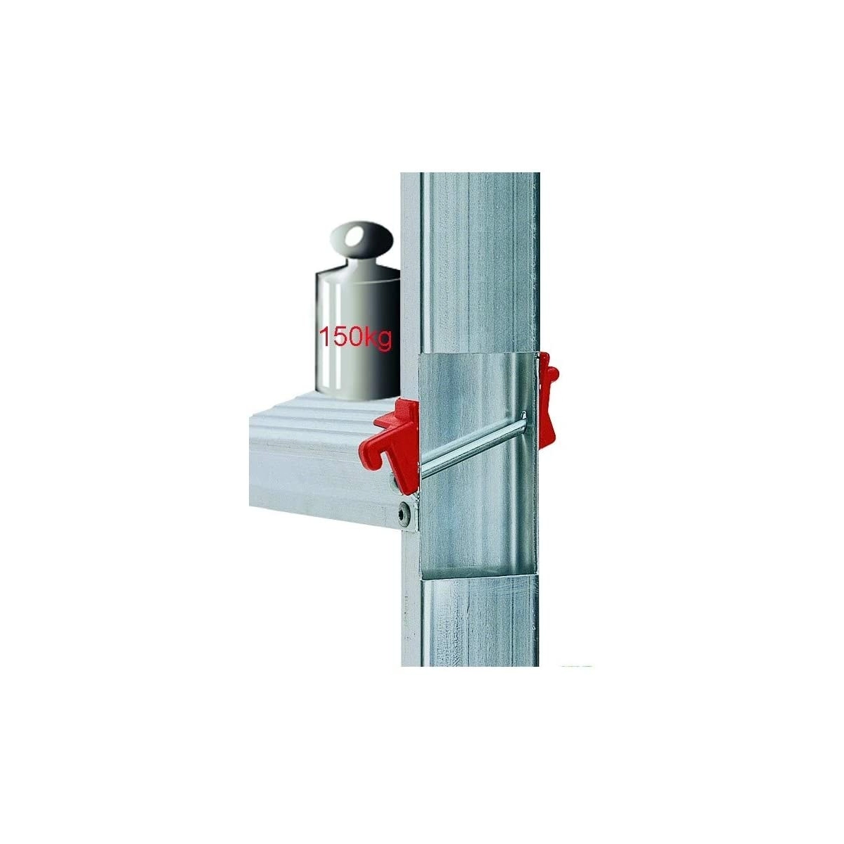 Arco de Seguridad: Dispone de un arco de apoyo superior con una altura de seguridad de 60 cm, permitiendo un punto de sujeción firme mientras trabajas en el último peldaño.