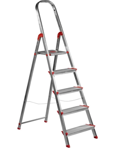 La escalera Rolser Norma de 5 peldaños es la combinación perfecta de ligereza y seguridad para el hogar o el comercio. Fabricada en aluminio de alta resistencia, cuenta con peldaños extra anchos de 12 cm y una capacidad de carga de hasta 150 kg, garantizando una subida cómoda y estable en todo momento.