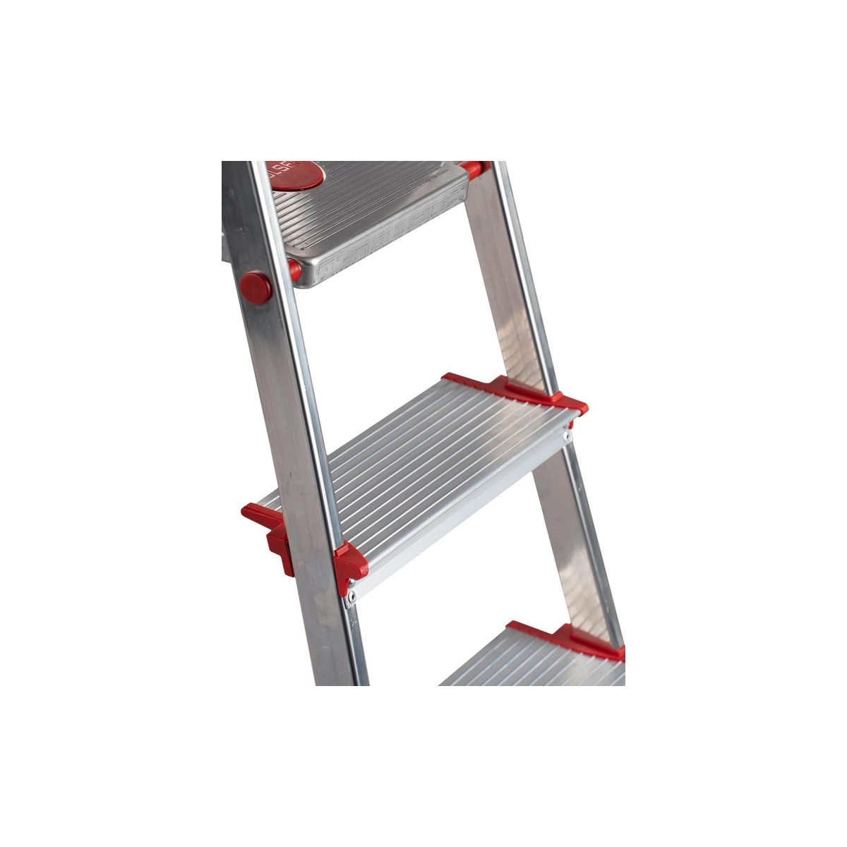 Seguridad Antideslizante: Tanto los peldaños como la plataforma superior cuentan con relieves antideslizantes, y las patas incluyen conteras de goma de alta adherencia para evitar desplazamientos accidentales.