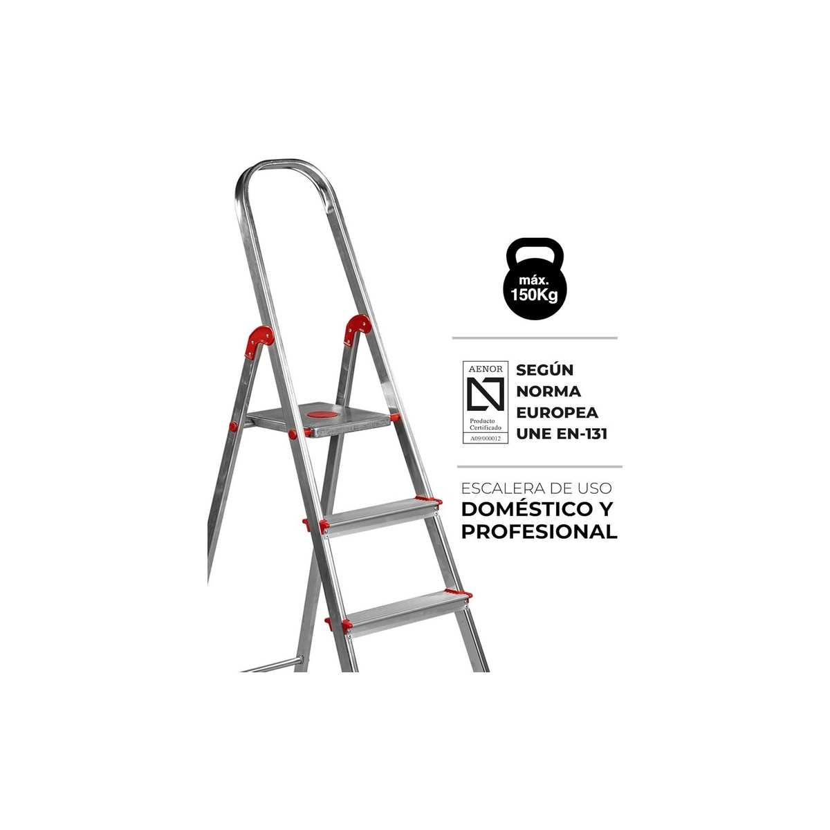 1. ¿Es apta para uso profesional? Aunque es ideal para el hogar por su ligereza, su certificación de carga de hasta 150 kg la hace perfectamente apta para tareas comerciales y mantenimiento ligero.