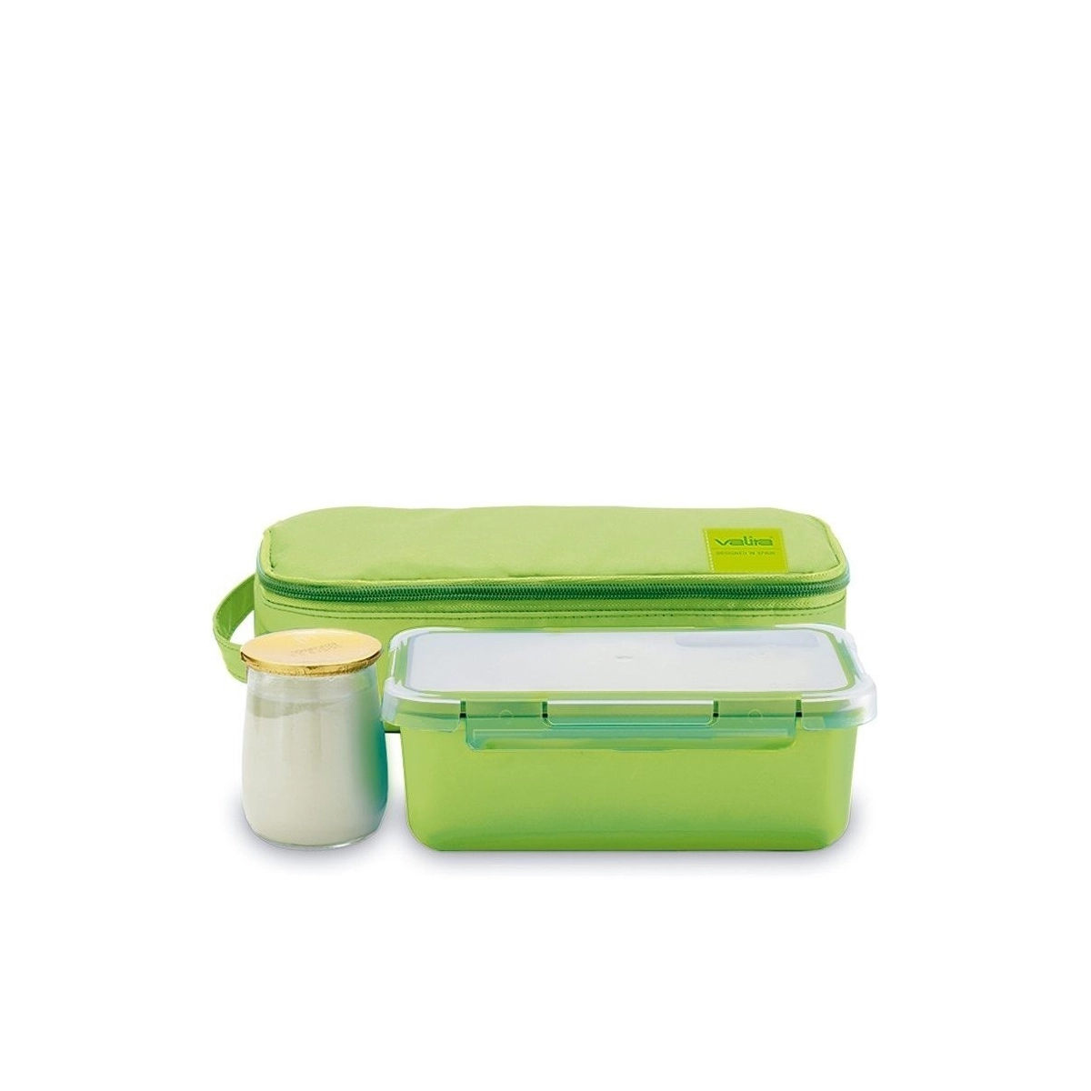 BOLSA PORTA ALIMENTOS CON ASA + CONTENEDOR HERMETICO 0,75 L - VERDE