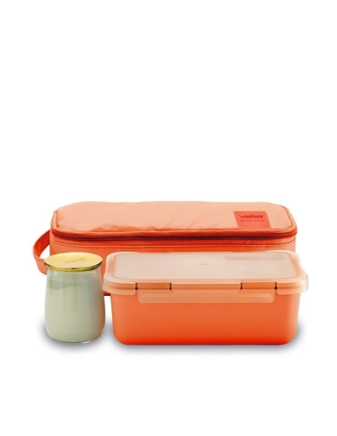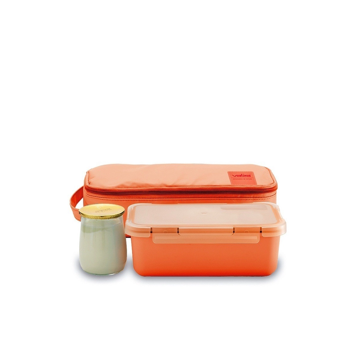 BOLSA PORTA ALIMENTOS CON ASA + CONTENEDOR HERMETICO 0,75 L - NARANJA