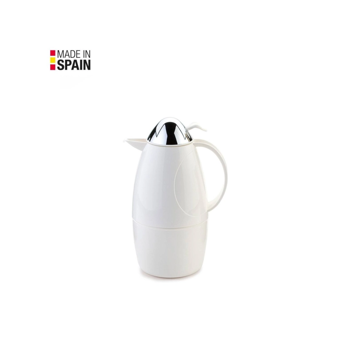 JARRA TERMICA BLANCA PARA CONSERVAR LIQUIDOS CALIENTES Y FRIOS DURANTE 24 HORAS, GRACIAS A SU BOTELLA INTERIOR DE VIDRIO DE DOBLE PARED AL VACIO