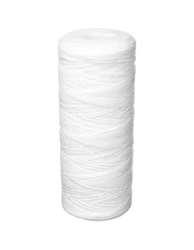 Cartucho filtrante de hilo bobinado de alta calidad para sistemas de agua de 10" x 4.5". Diseñado para retener eficazmente partículas superiores a 25 micras como arena, óxido, piedras y lodo. Cuenta con certificación NSF, garantizando la máxima seguridad en el tratamiento del agua.