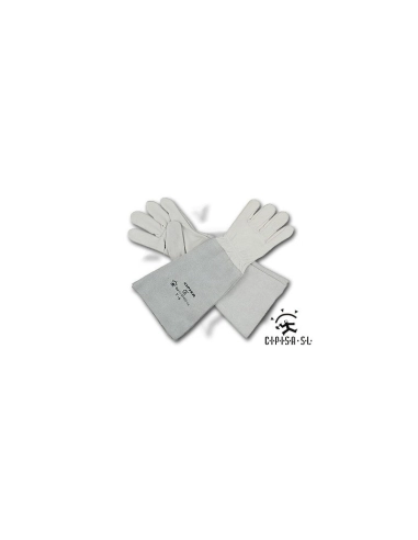 GUANTE TODO FLOR DE VACUNO DE COLOR GRIS CON MANGUITO DE SERRAJE DE 21 CM
