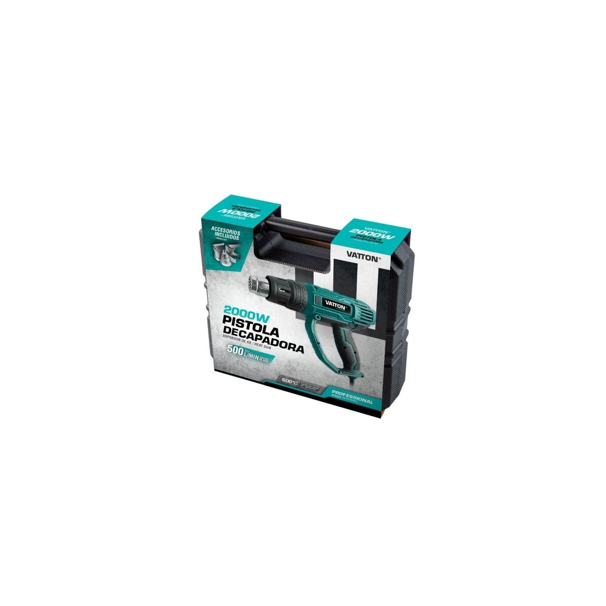 Pistola decapadora VATTON de 2000W, ideal para remover pintura, barnices y adhesivos. Potente, versátil y fácil de manejar en trabajos de bricolaje.