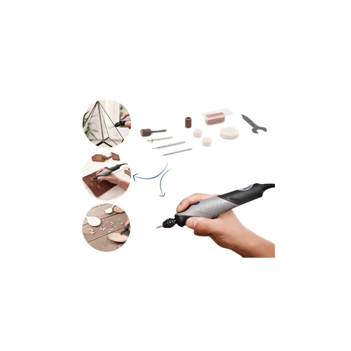 Transforma tus ideas en piezas únicas con la Dremel Stylo+. Su diseño ligero y estilizado en forma de bolígrafo te permite trabajar con la máxima precisión, ofreciendo una comodidad total para sesiones largas de grabado, pulido o lijado suave. Es la herramienta definitiva para artesanos y creativos que buscan un acabado profesional en proyectos minuciosos.