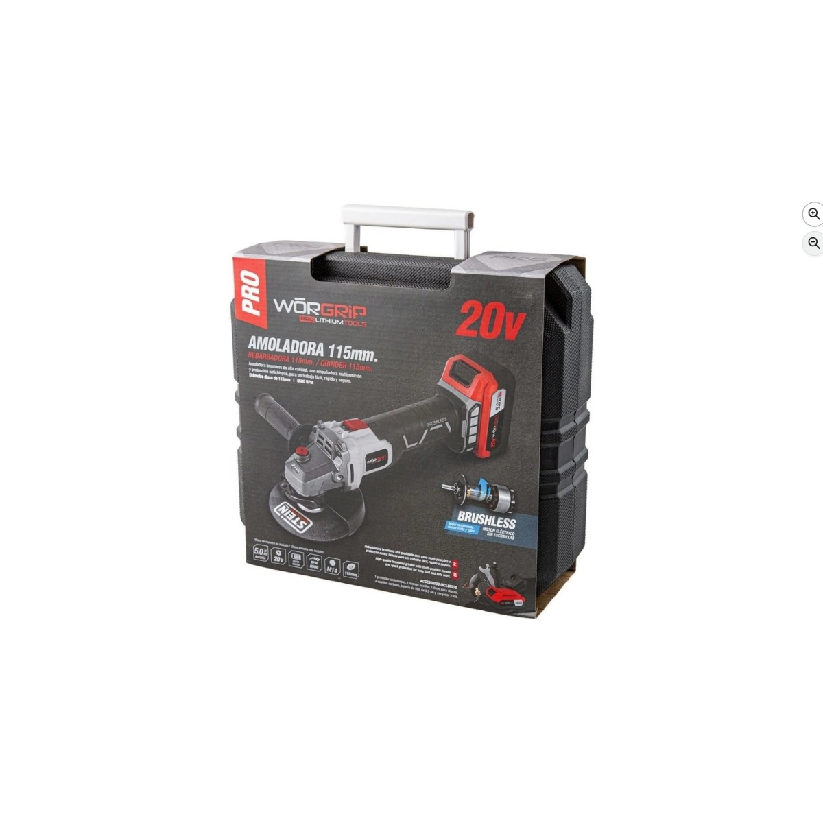 WORGRIP - AMOLADORA BATERIA115mm. 20V. 5 Ah.BRUSH