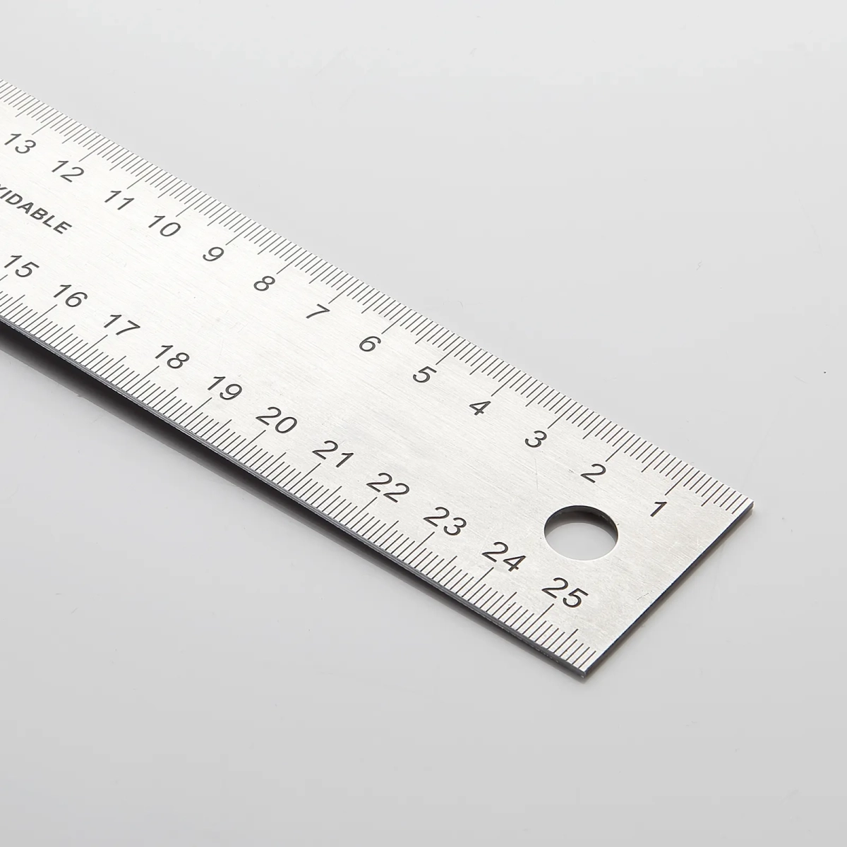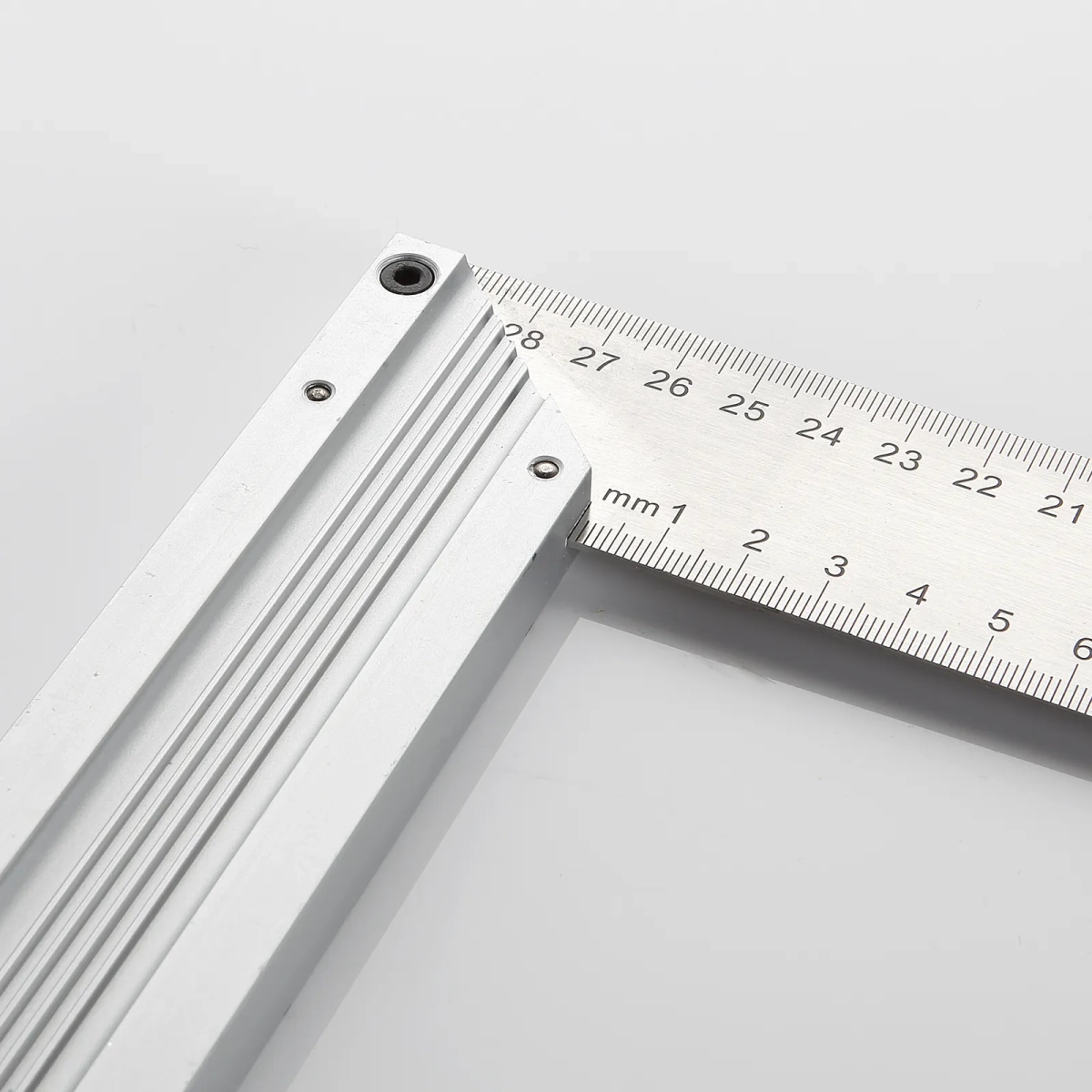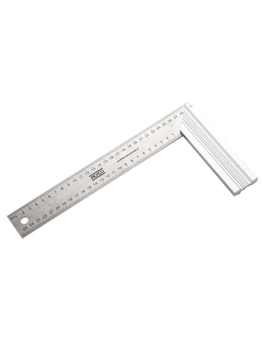 Escuadra de acero inoxidable con mango de aluminio para mediciones precisas y duraderas.