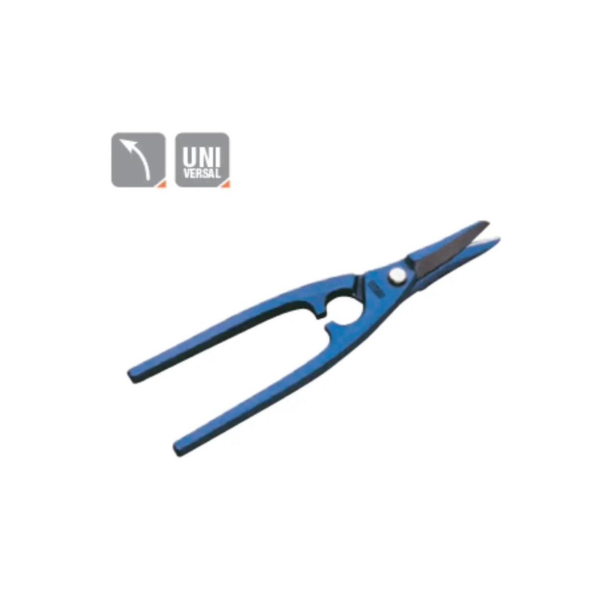 Corte Universal: Gracias a la geometría de sus hojas, permite realizar cortes tanto rectos como curvos con facilidad, adaptándose a cualquier forma necesaria en la chapa.
