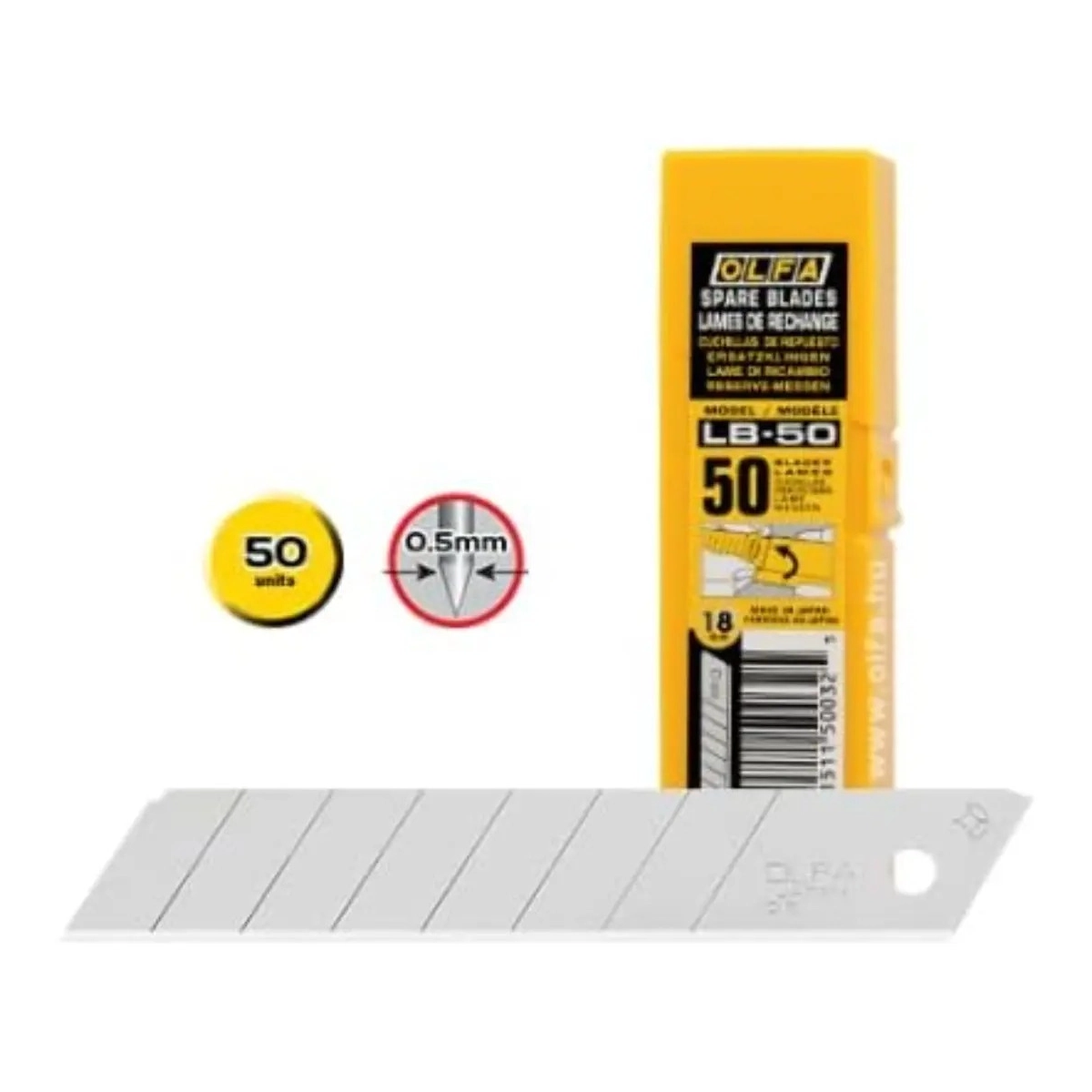 OLFA LB-50 – Caja de 50 Cuchillas de Repuesto (18 mm) | Acero de Alta Carbono y Máxima Precisión
