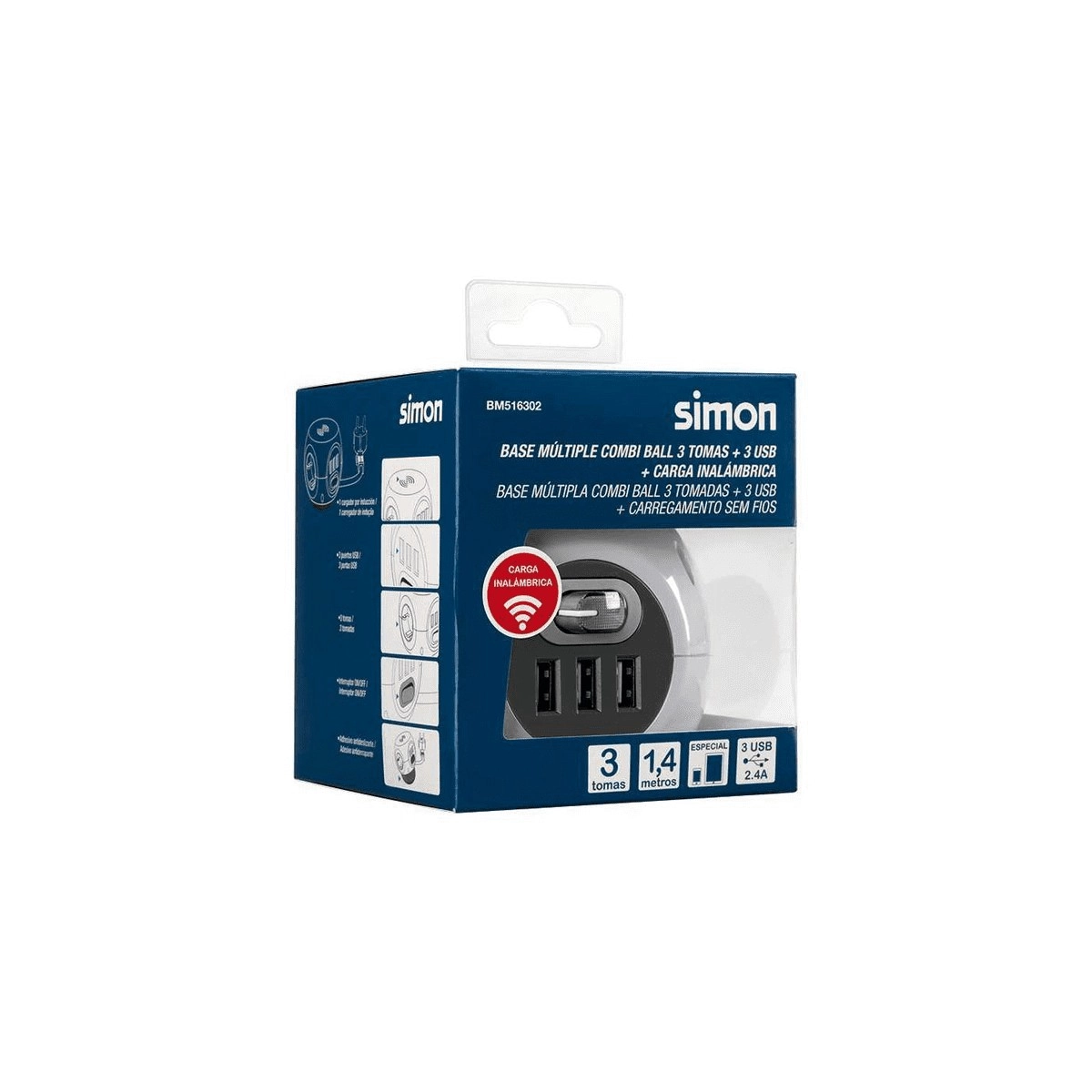 BASE COMBI BALL CARGA INALAMBRICA 3 TOMAS + 3 USB