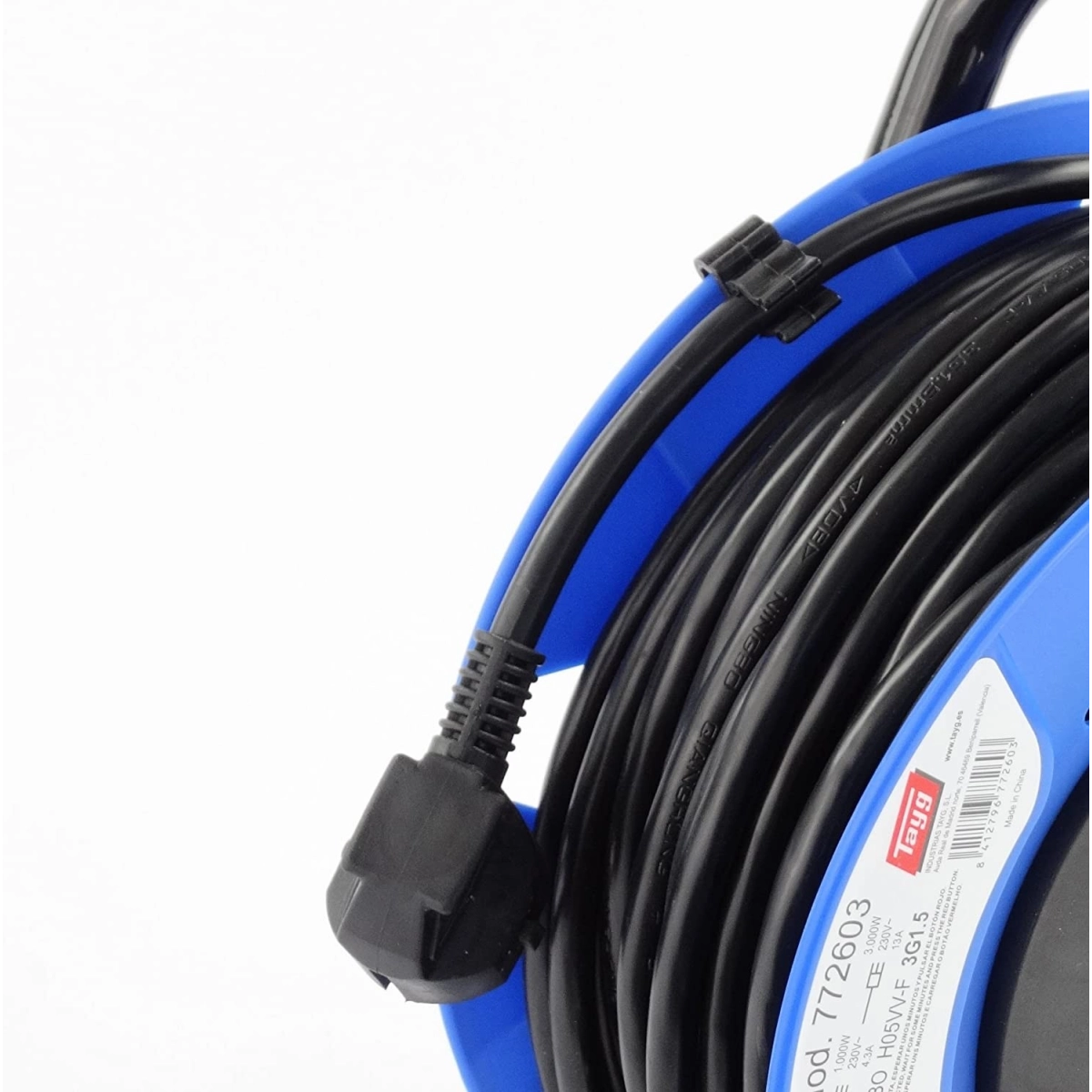 ENROLLACABLE EXTENSIBLE ELECTRICO DE COLOR NEGRO/AZUL DE 50 METROS Nº777608
