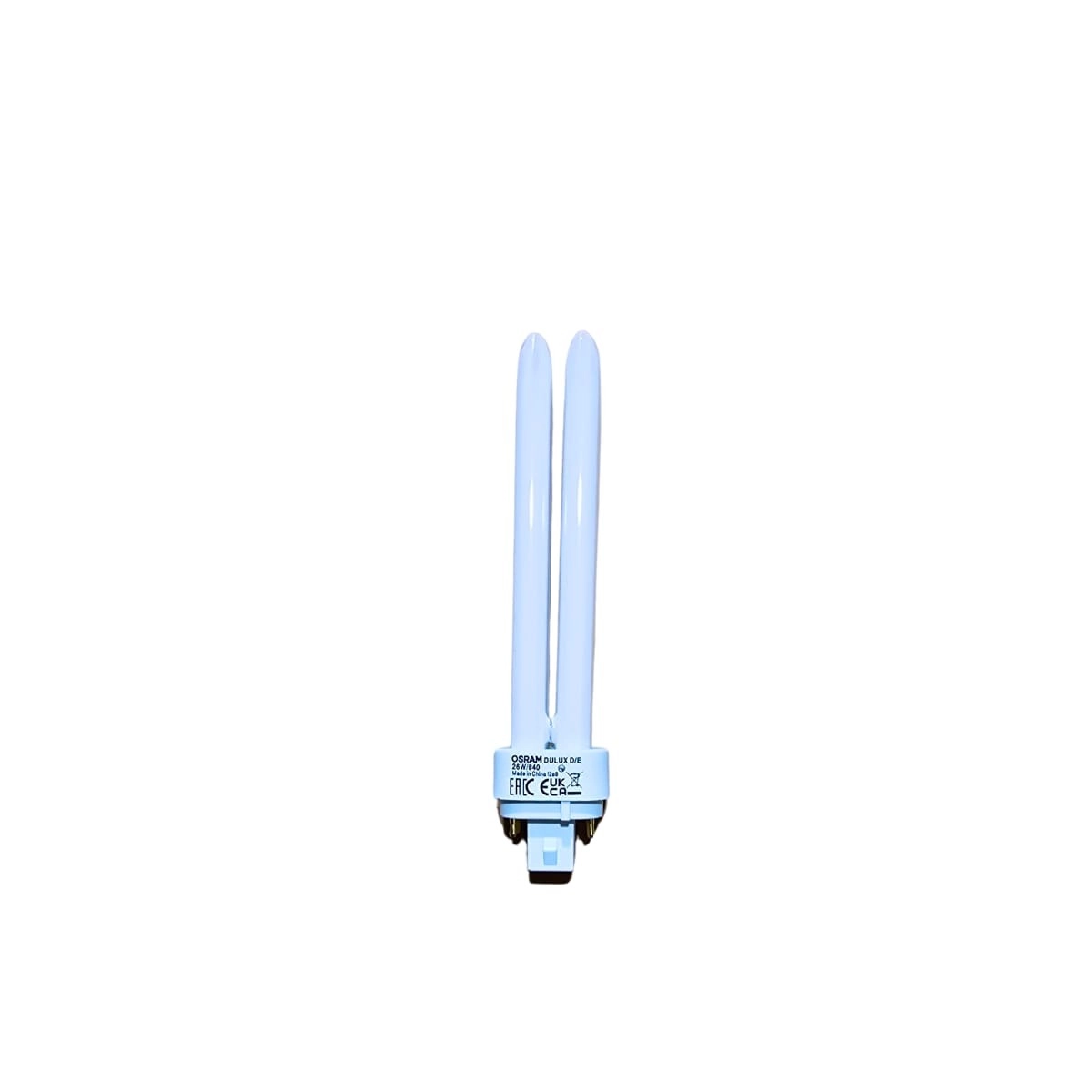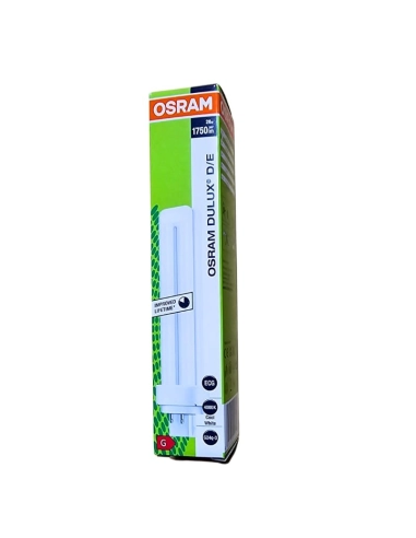 La bombilla Osram Dulux D/E Cool White de 26W combina eficiencia energética y una iluminación de alta calidad. Diseñada con casquillo G24q-3, emite una luz blanca fría de 4000K que genera un ambiente claro y profesional, ideal para oficinas, comercios y hogares. Su potencia de 26W produce 1750 lúmenes, asegurando un rendimiento luminoso sobresaliente con un bajo consumo.