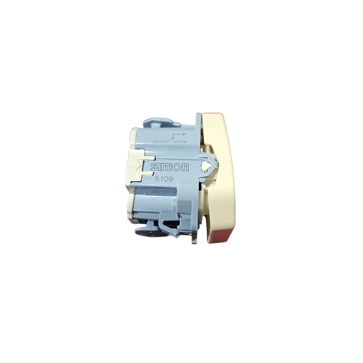 Interruptor conmutador Simon Serie 27201-61 de 10AX 250V. Elegante acabado en color marfil, ideal para sistemas eléctricos con control desde dos puntos.
