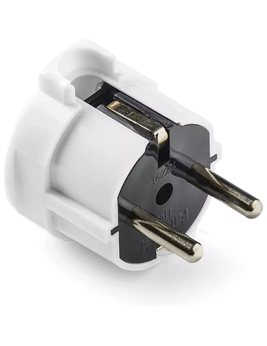 Fabricada en materiales resistentes y de alta calidad, esta clavija cumple con los estándares de seguridad eléctrica, ofreciendo una conexión fiable y duradera. Su acabado en color blanco marfil le da un aspecto limpio y discreto, integrándose perfectamente en cualquier entorno.