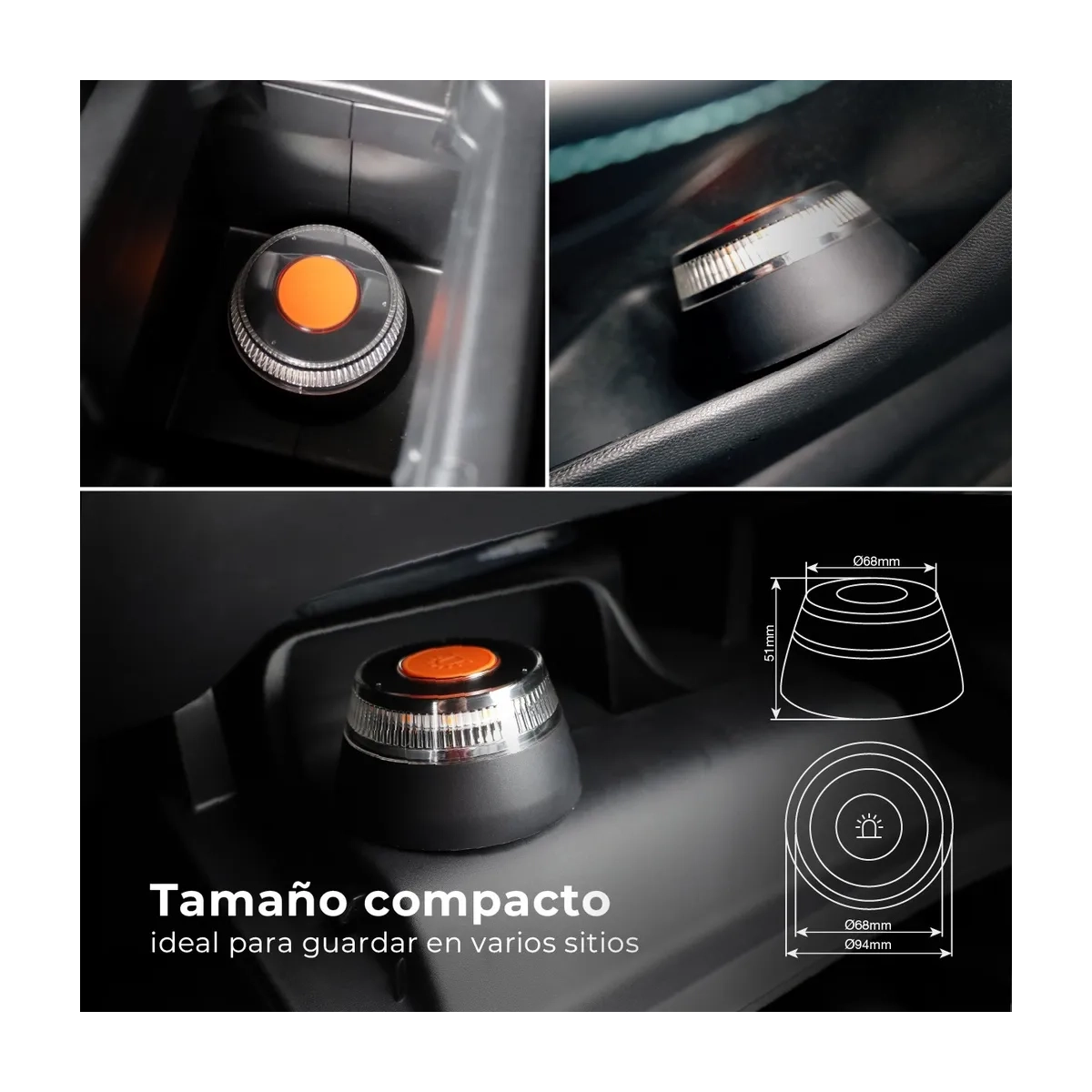 De fácil uso y encendido instantáneo, puede colocarse en el techo del vehículo gracias a su base magnética, sin necesidad de salir del coche.