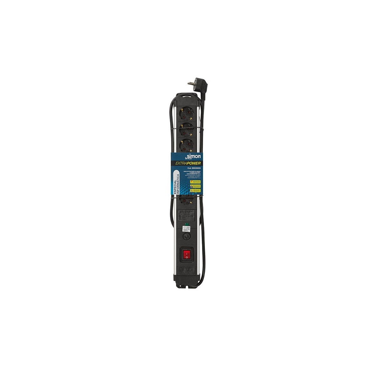 SIMON - Ladrón De Enchufes Con Interruptor, 6 Tomas Schuko 16A 250V, Protección De Sobretensiones, Cable 1,5 MTS