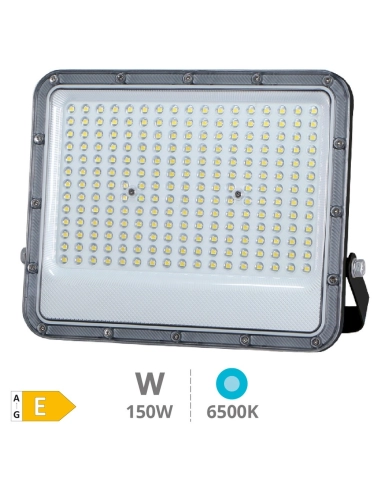 Proyector LED Belinta de 150W fabricado en aluminio con acabado negro. Luz fría 6500K y protección IP65, perfecto para iluminar exteriores, fachadas, naves y zonas industriales.