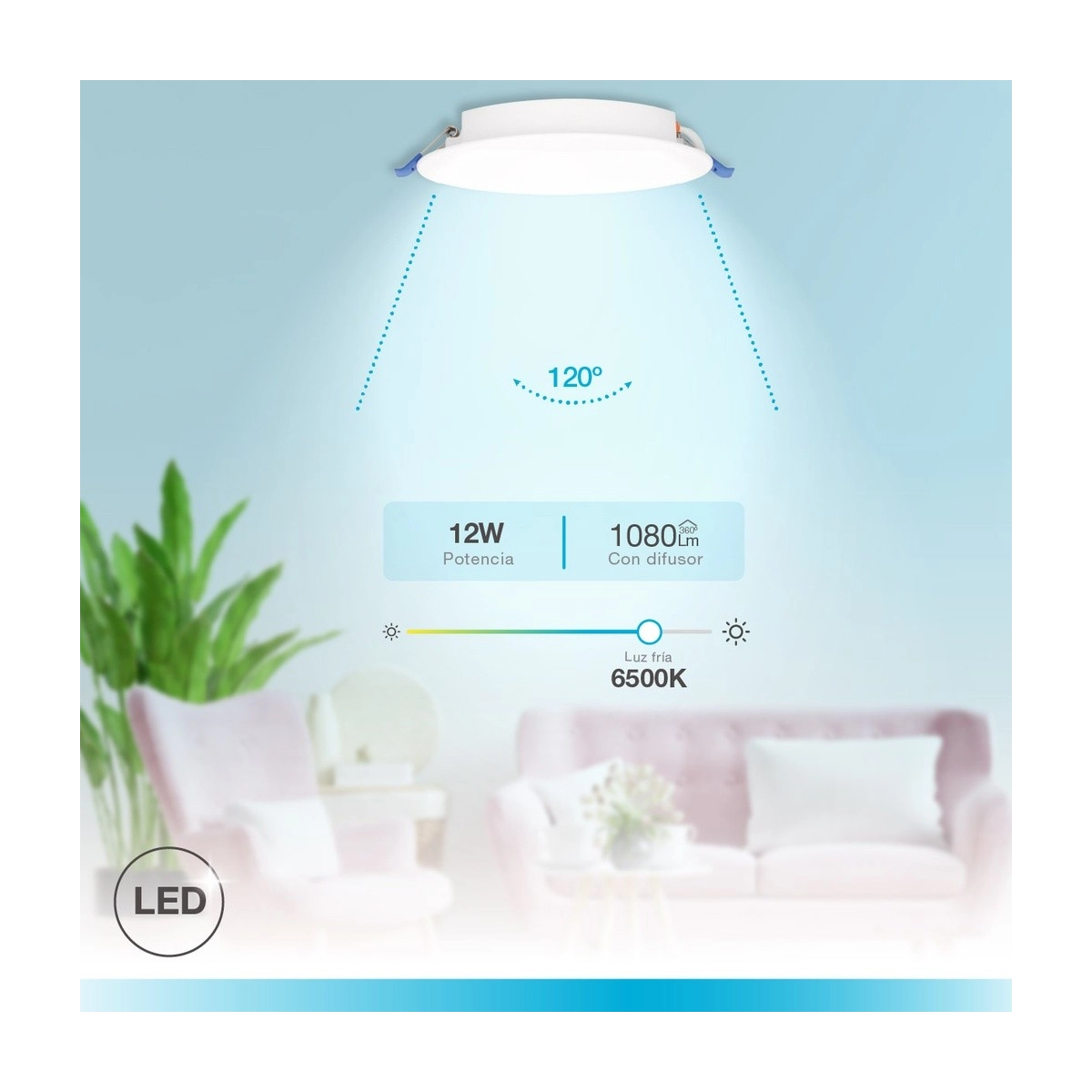 GSC - Downlight empotrable LED redondo Belur 12W 6500K Blanco