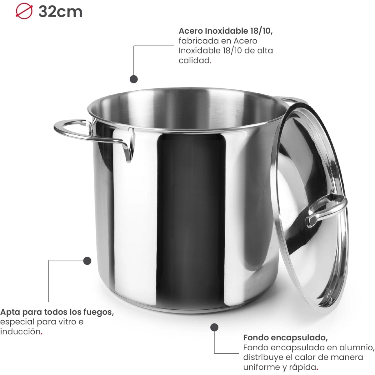 IBILI - Olla Super Alta Con Tapa Noah De Acero Inoxidable 18/10 32 CM - 605432