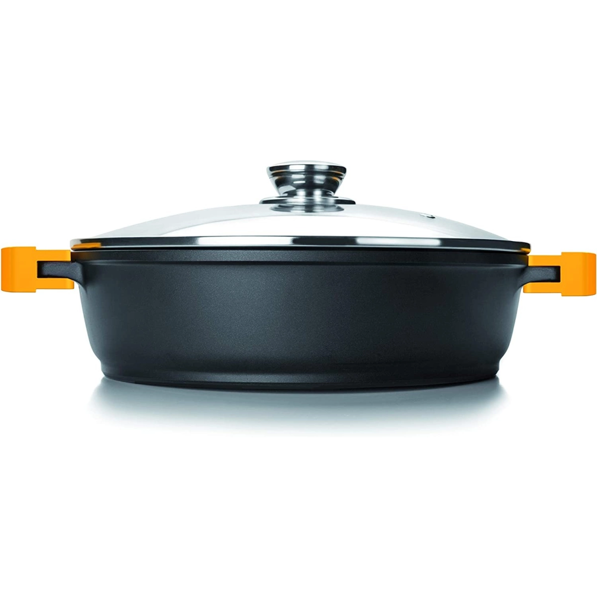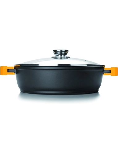 GUISERA EVOLUTION CON TAPA FABRICADO EN ALUMINIO FUNDIDO, CON ASAS DE SILICONA Y TAPA DE CRISTAL