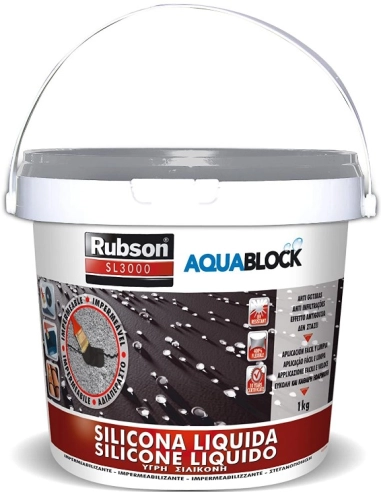 Rubson Aquablock SL3000 Silicona Líquida gris, impermeabilizante 1kg