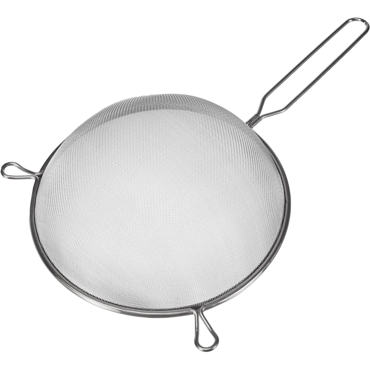Colador de malla media bola de acero inoxidable, resistente y versátil.