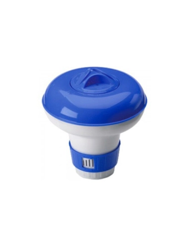 Clorador flotante de superficie para tabletas de 20 g. Dispone de regulación de paso de agua para aumentar o reducir el aporte de cloro al agua de la piscina.