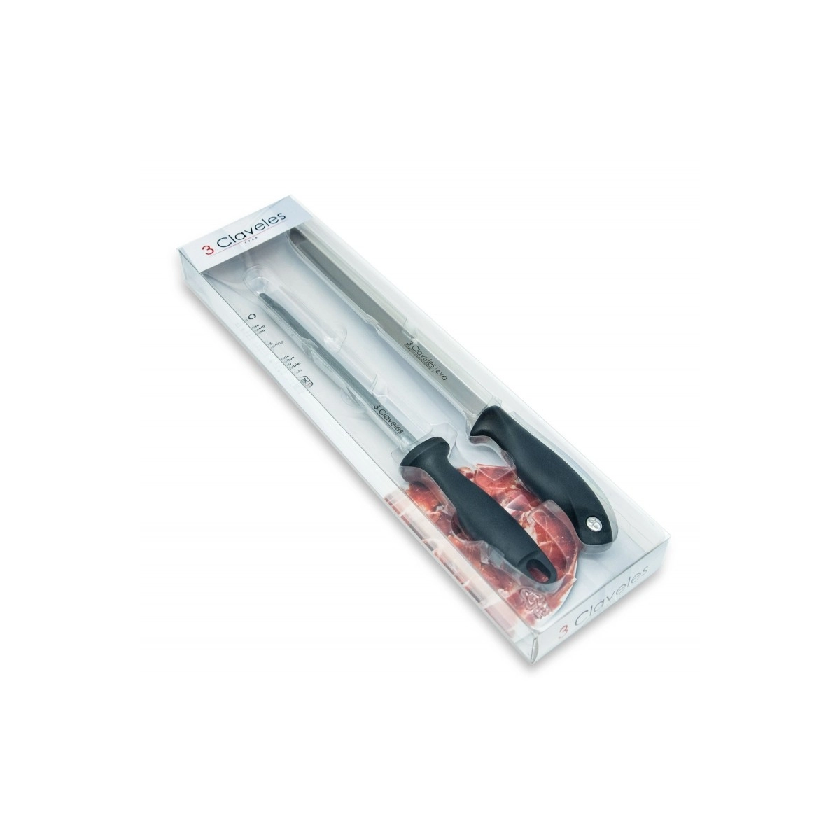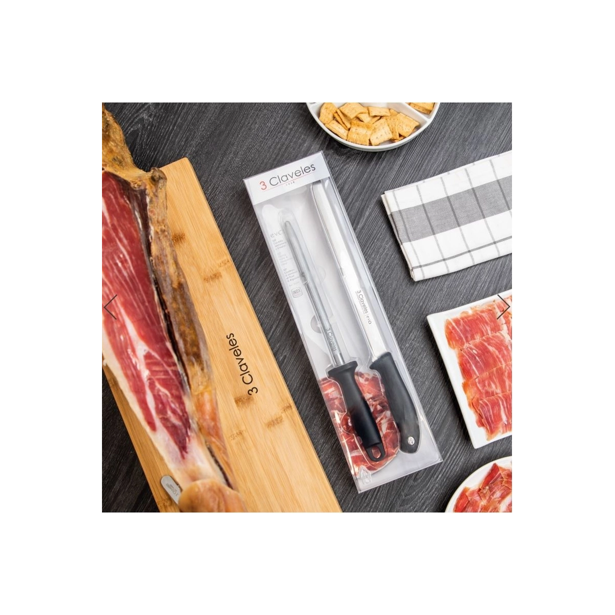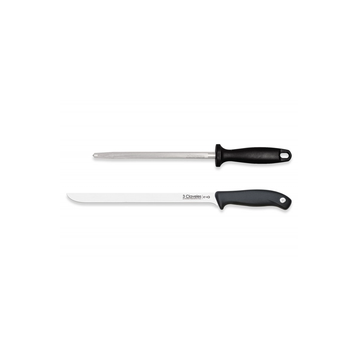 3 CLAVELES - SET CUCHILLO JAMONERO EVO Y CHAIRA