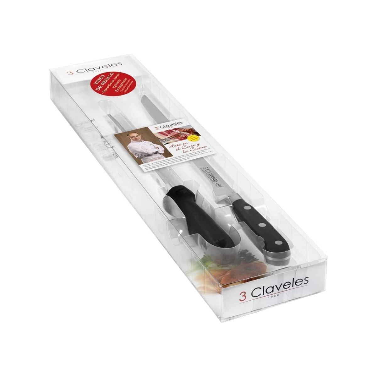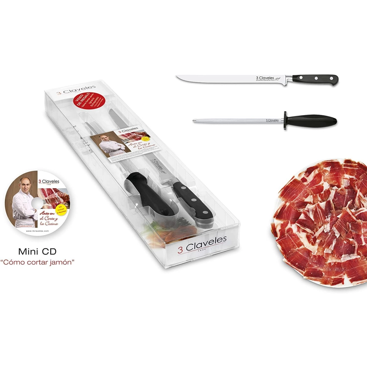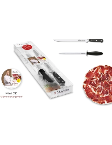 3 CLAVELES - SET DE CUCHILLO JAMONERO + CHAIRA + CD
