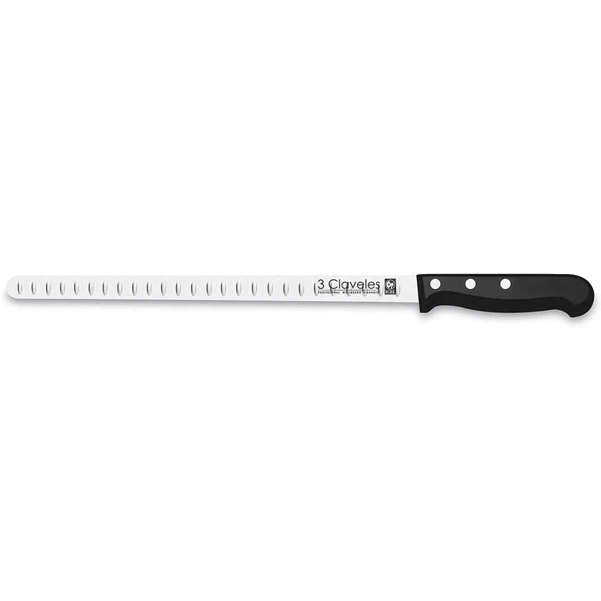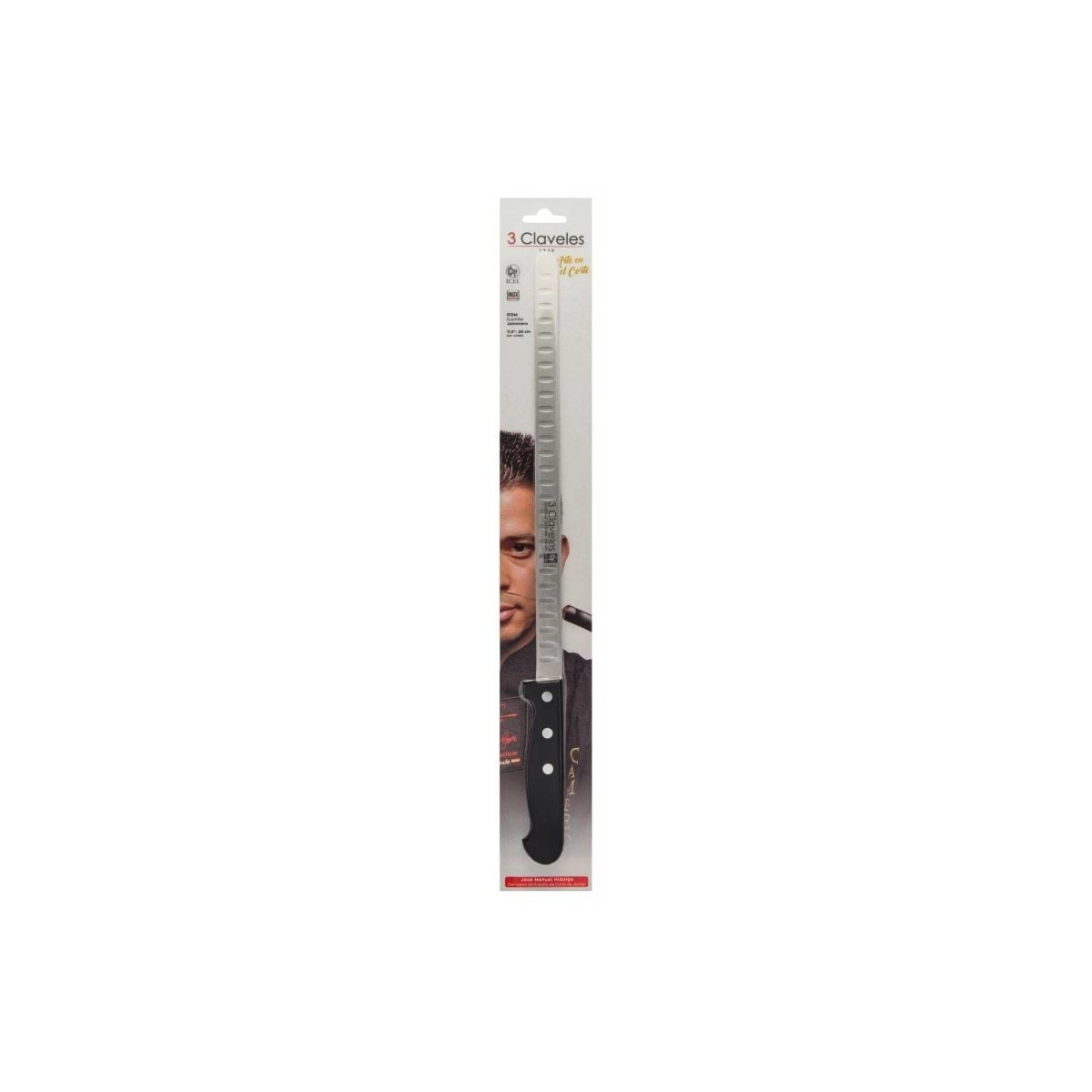 3 CLAVELES - CUCHILLO JAMONERO ALVEOLADO ACERO INOXIDABLE MANGO POM - 29 CM