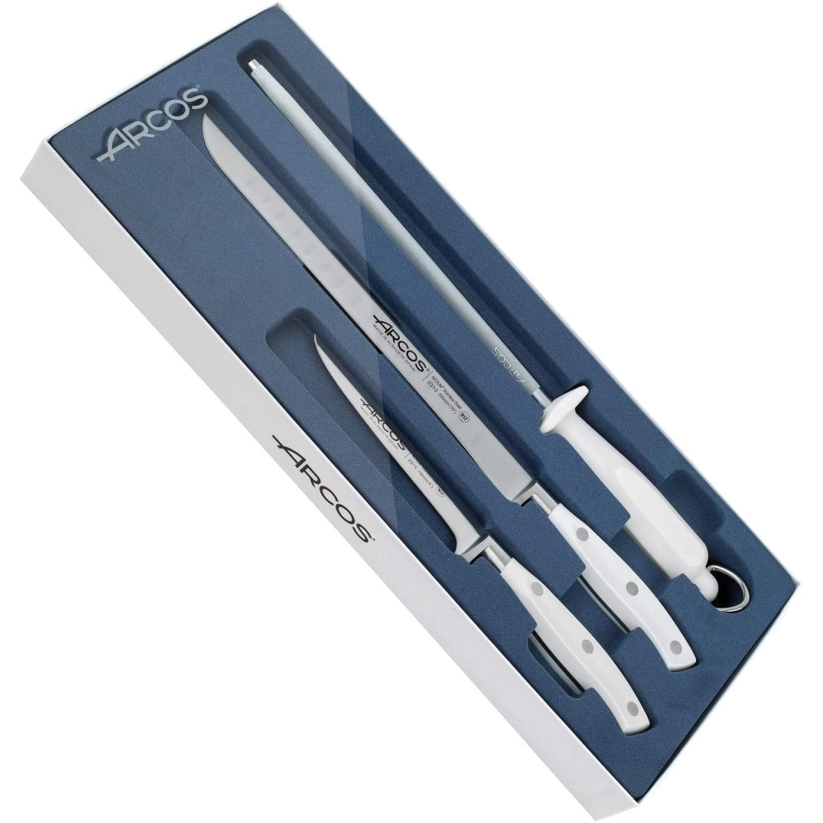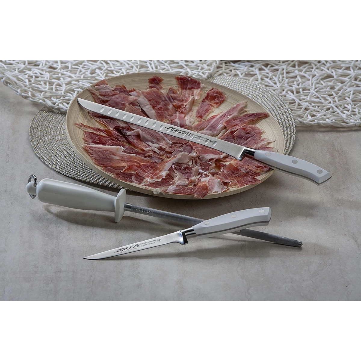 ARCOS - SET JAMONERO RIVIERA BLANCO DE ACERO INOXIDABLE - 3 PIEZAS
