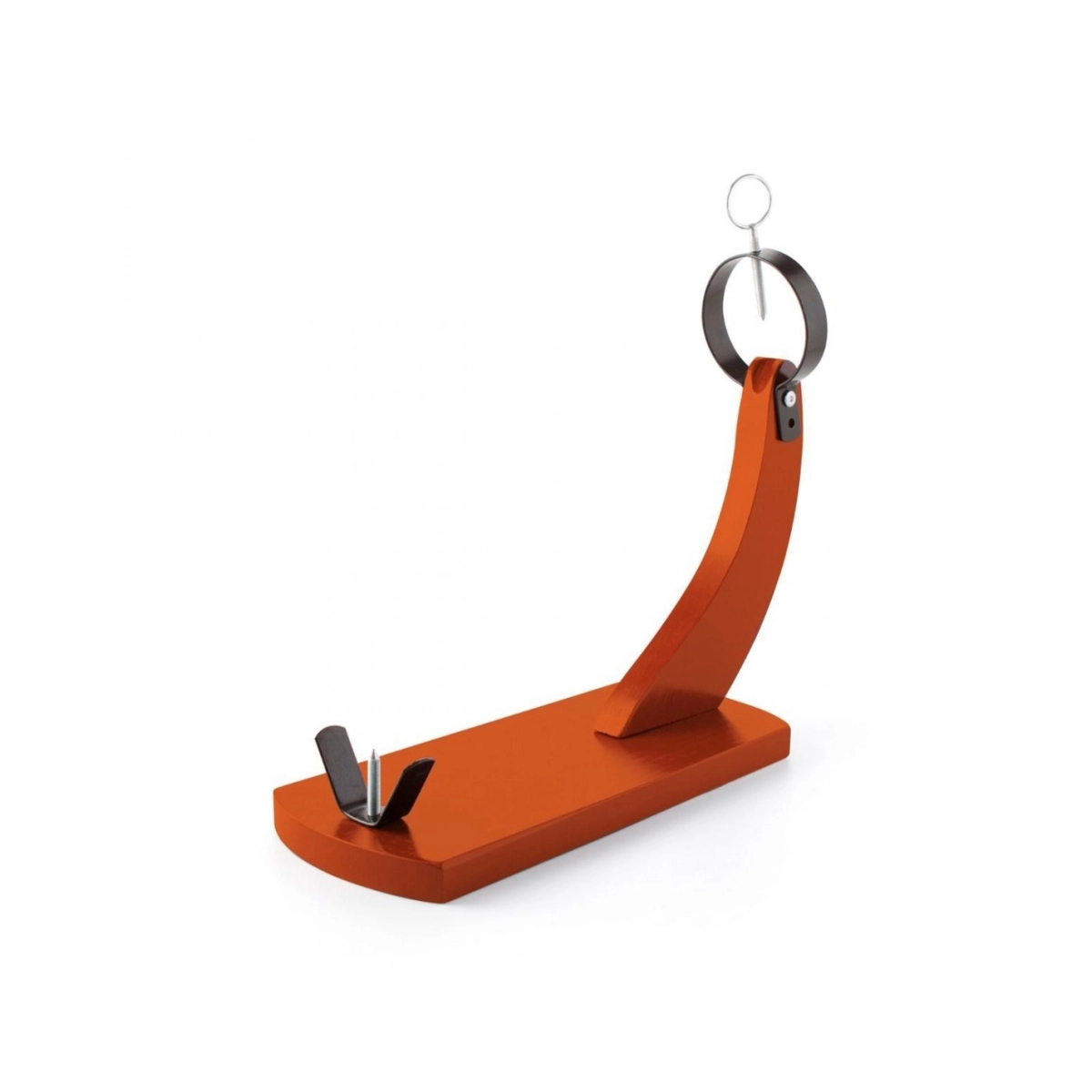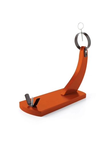SOPORTE JAMONERO DE MADERA BARNIZADA Y CON EL SOPORTE Y EL PINCHO EN ACERO DE COLOR NEGRO