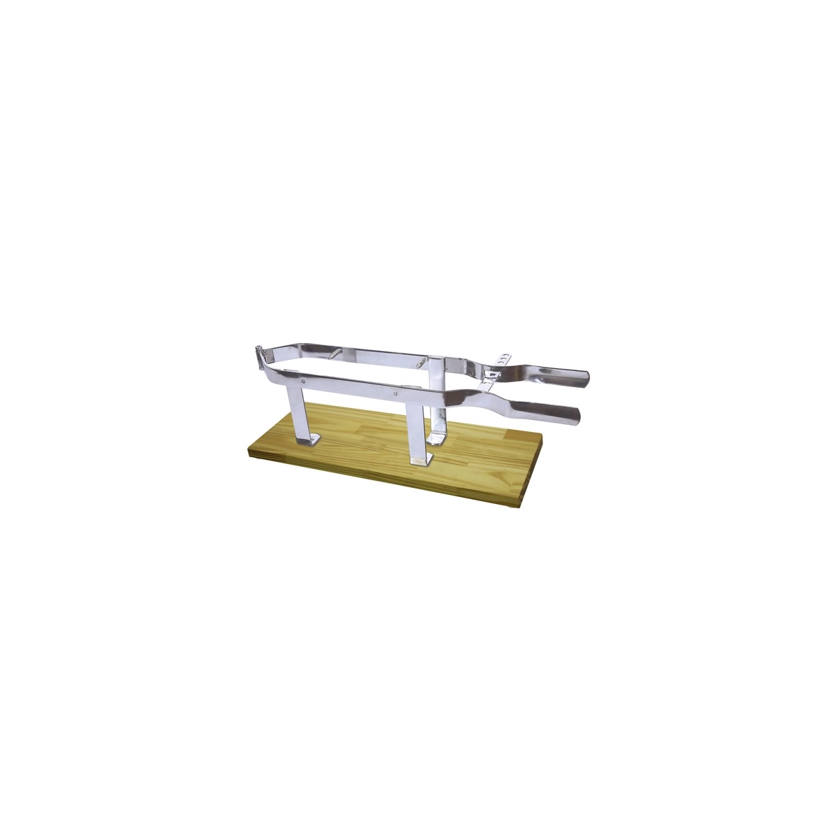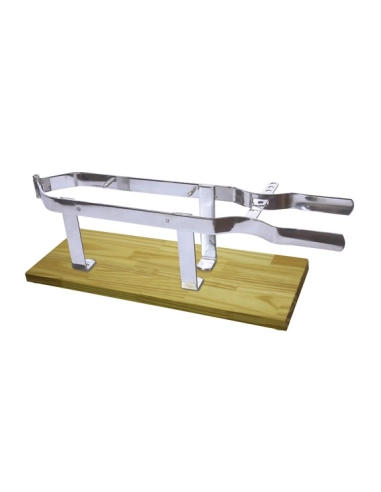 SOPORTE JAMONERO MODELO PINZA DE ACERO INOXIDABLE Y LA BASE DE MADERA