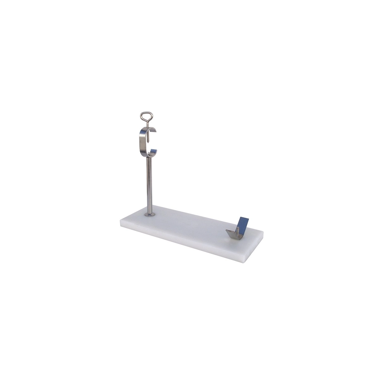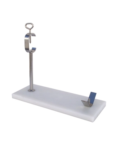 - SOPORTE JAMONERO FABRICADO EN ACERO INOXIDABLE ALIMENTICIO Y CON BASE DE FIBRA BLANCA
