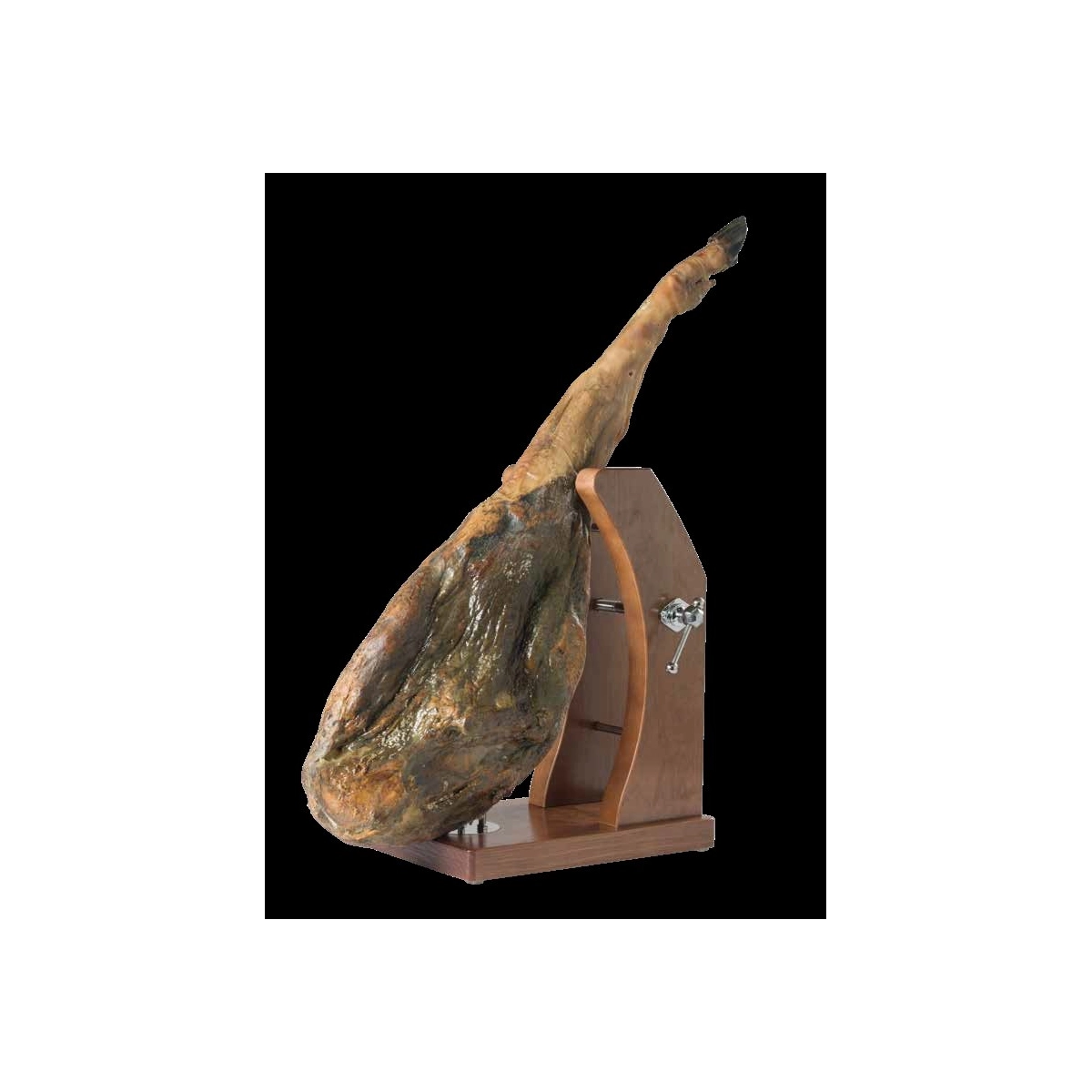 - CUENTA CON UN SISTEMA DE SUJECION MEDIANTE PRESION DEL TORNIQUETE, CON LO QUE SE CONSIGUE UN SEGURO Y PERFECTO ANCLAJE DEL JAMON