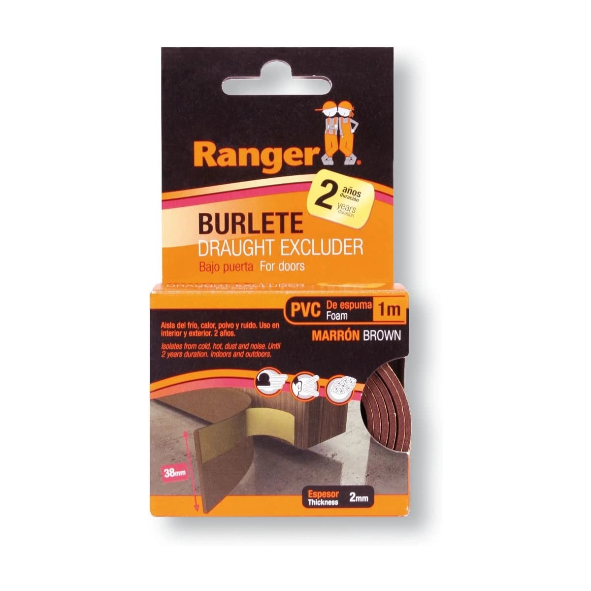 BURLETE AISLANTE AUTOADHESIVO DE PVC EXPANDIDO EN COLOR MARRON, CON ADHESIVO ACRILICO Y FILM PROTECTOR DE PE