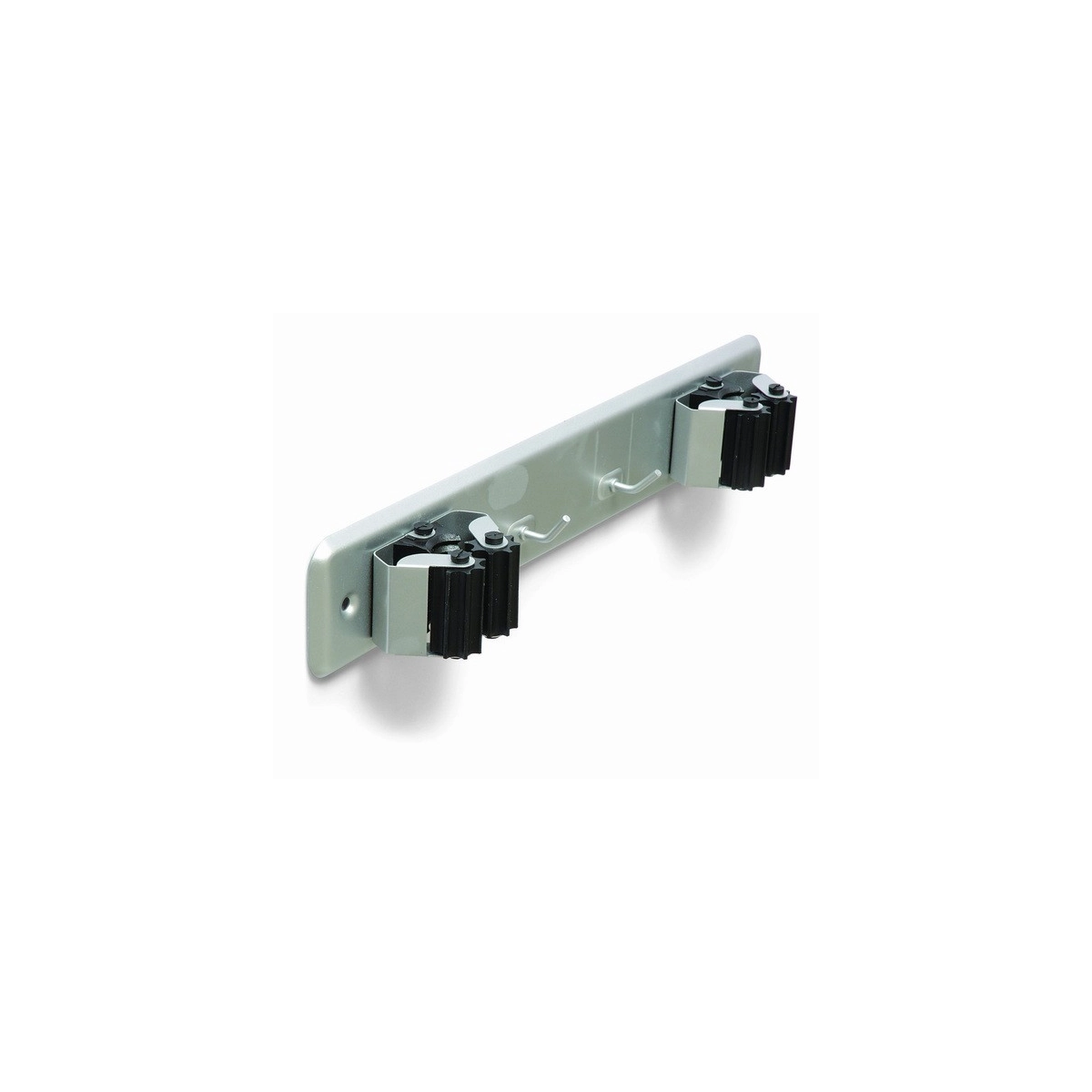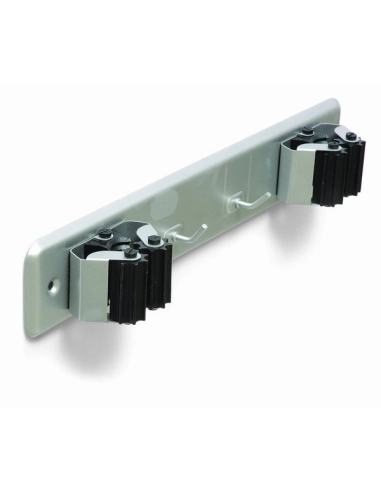 CUELGA ESCOBAS DOBLE CON RODILLOS GIRATORIOS DE GOMA PARA UNA COLOCACION MAS SENCILLA Y UN AGARRE PERFECTO DE LOS MANGOS
