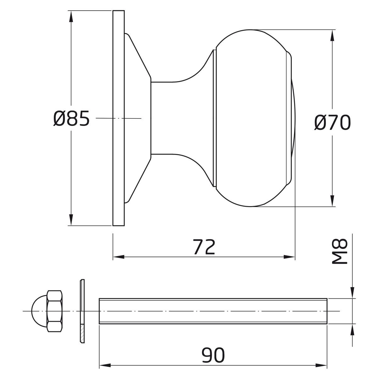 POMO DE PUERTA EN ACERO CROMADO MATE