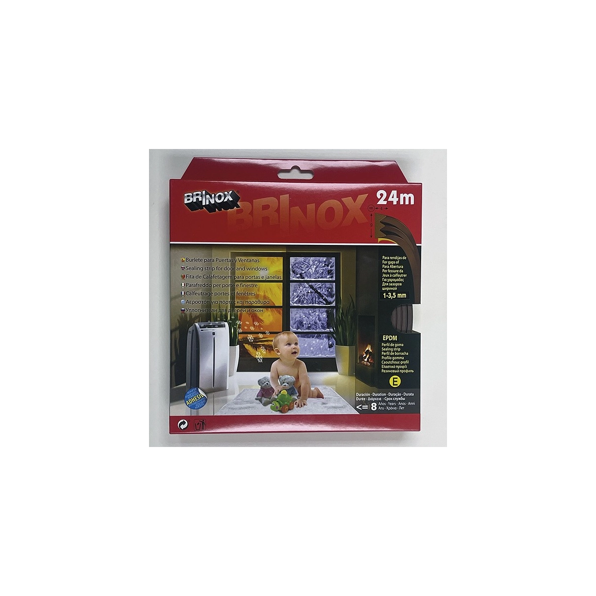 BRINOX - BURLETE PUERTA Y VENTANA TIPO E ADHESIVO COLOR MARRON 9 X 4 MM 6 MTS - B82500M