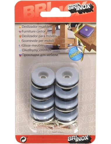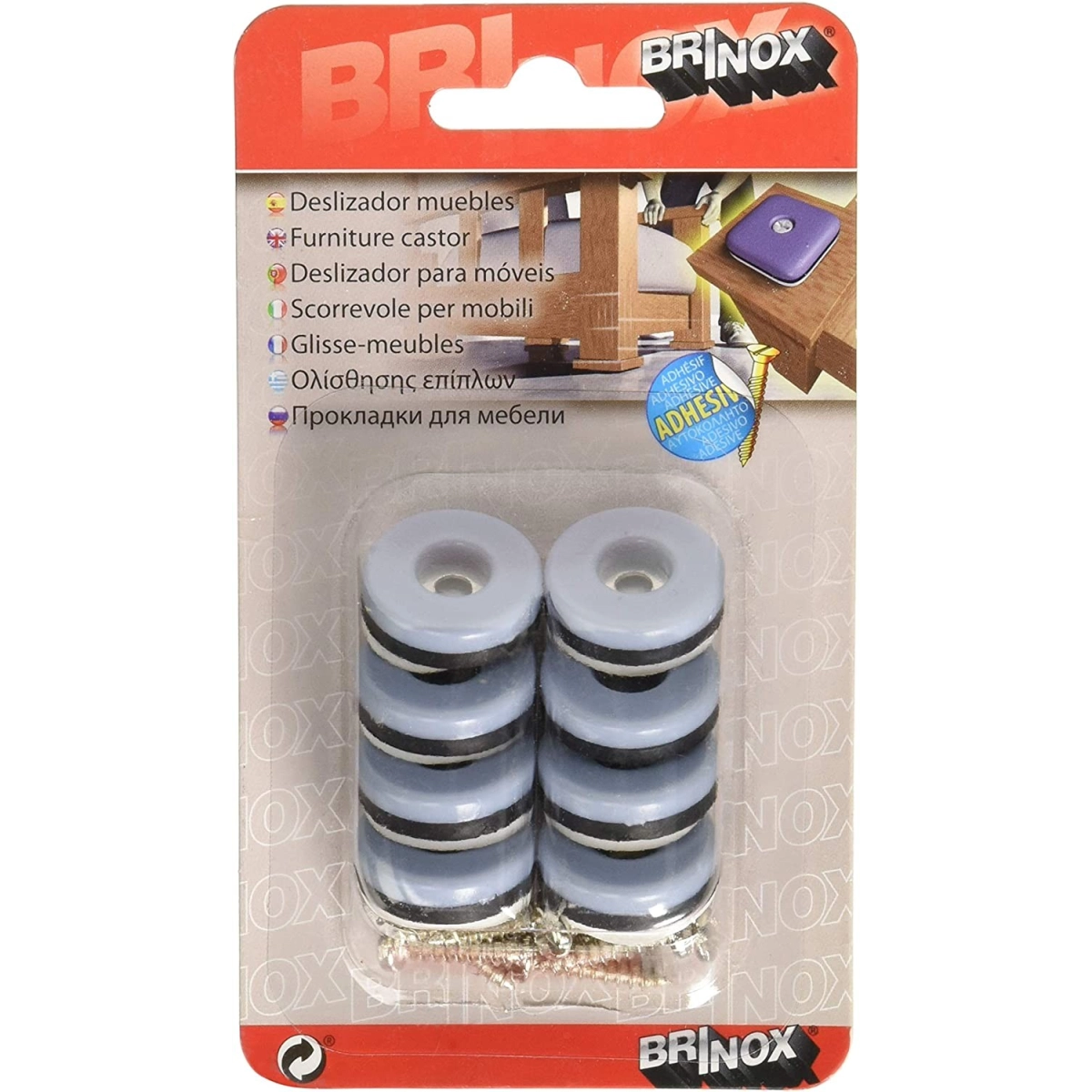 BRINOX - BLISTER 8 DESLIZADORES PARA MUEBLES ADHESIVO + TORNILLO GRIS 22 MM - B77540G