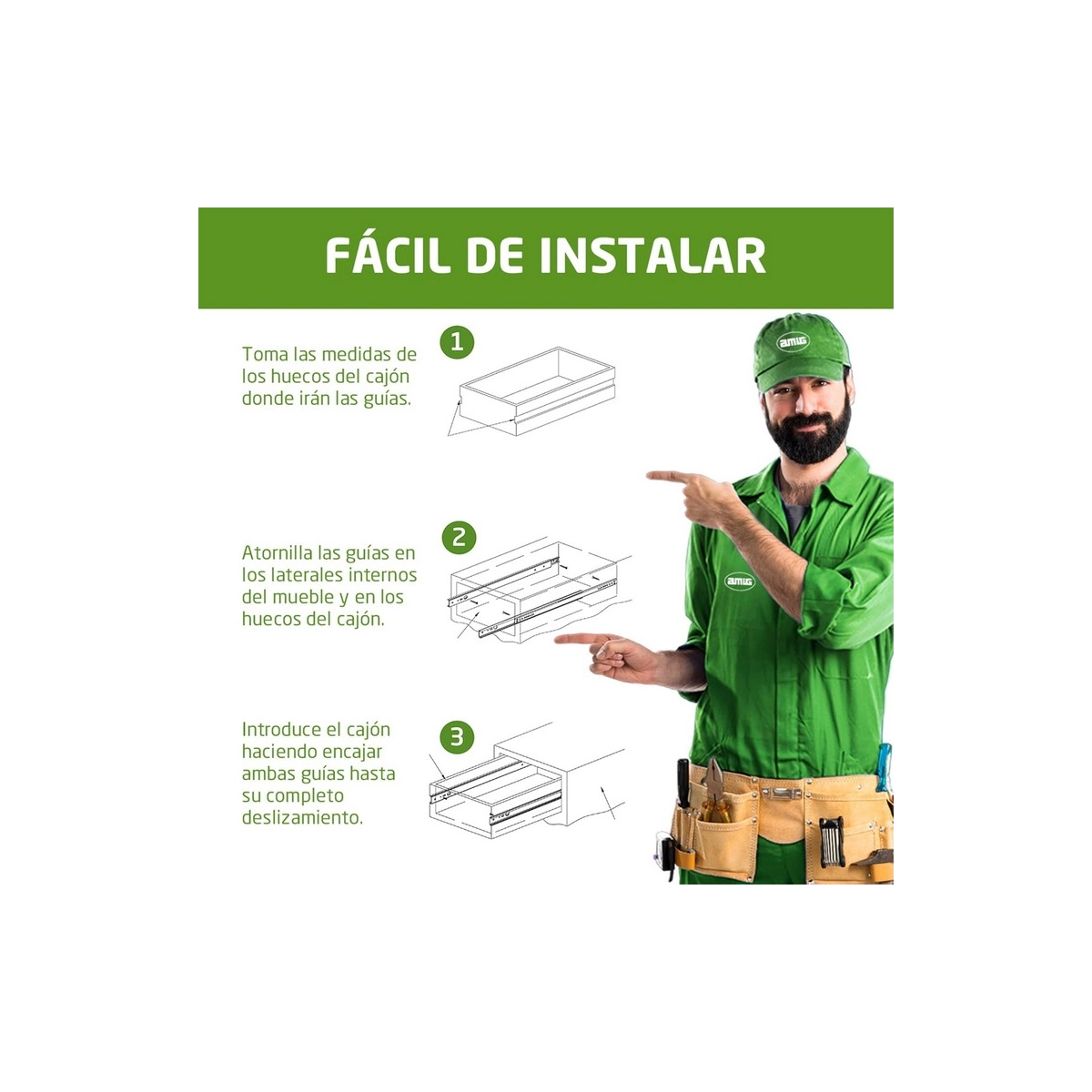 Amig - Juego de 2 Guías Correderas Metálicas Mod.26 Medidas: 374 x 27 mm