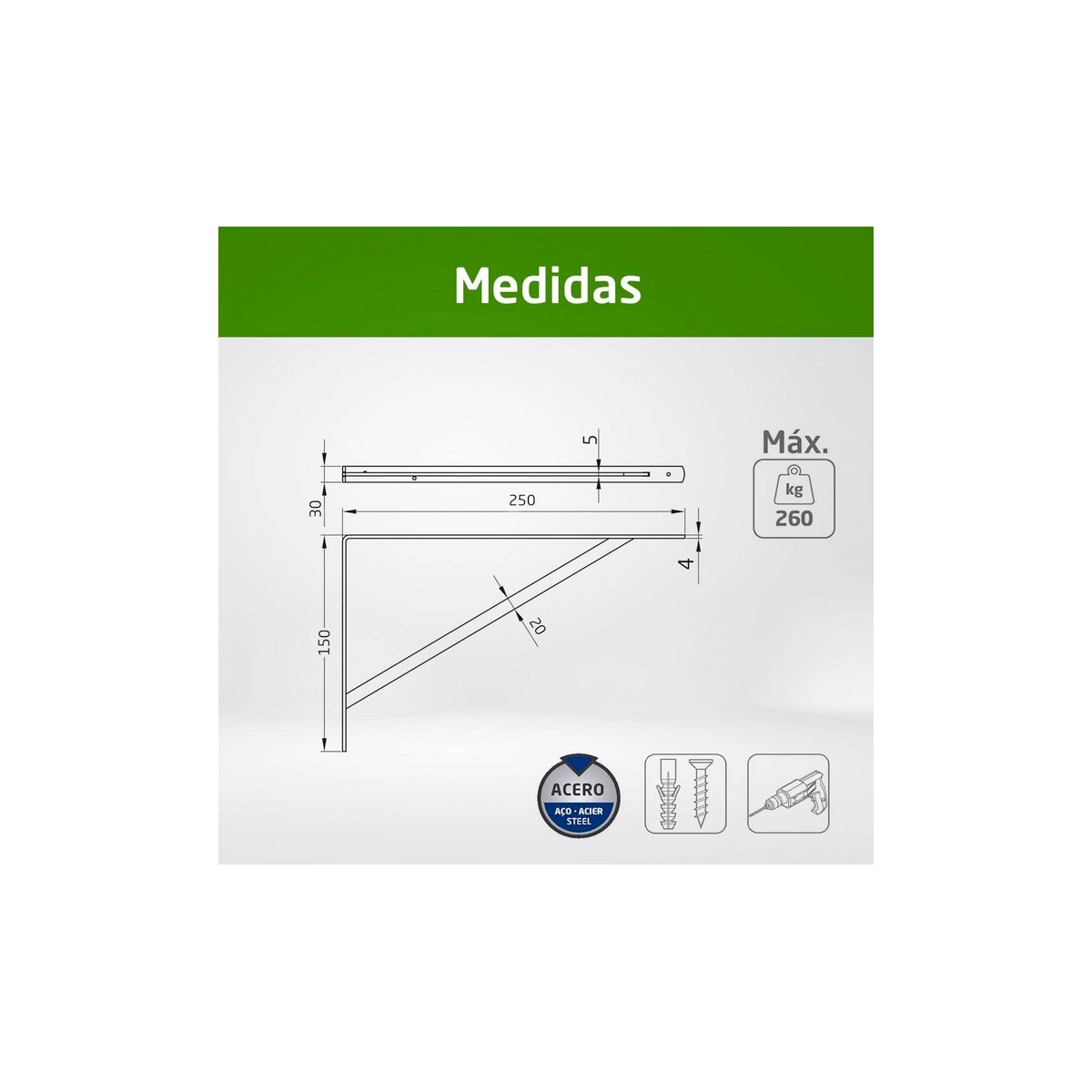 Amig - Palomilla para estanterías Escuadra metálica para baldas Medida: 250x150 mm