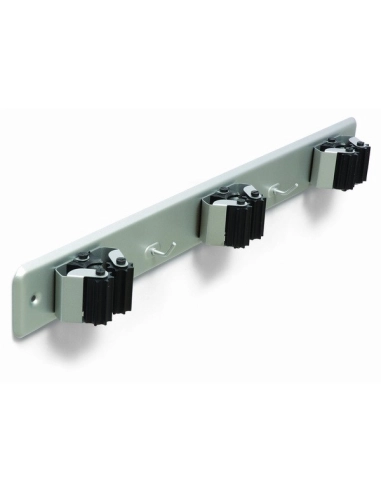 CUELGA ESCOBAS TRIPLE CON RODILLOS CROMADO MATE - 420x50 MM