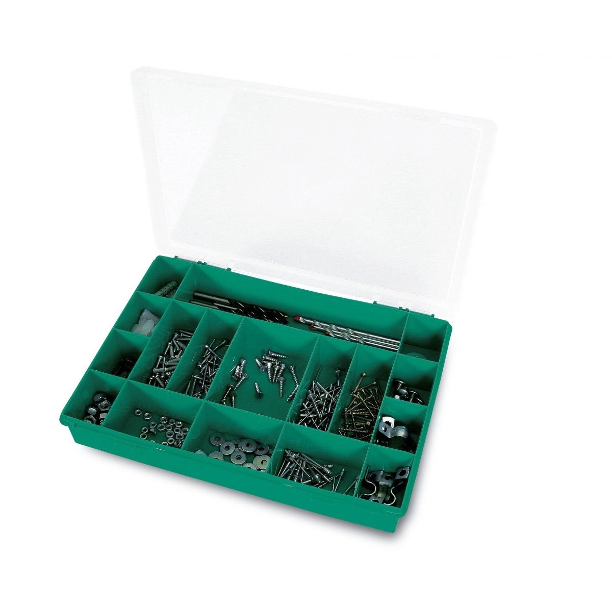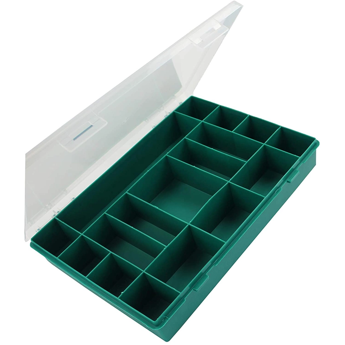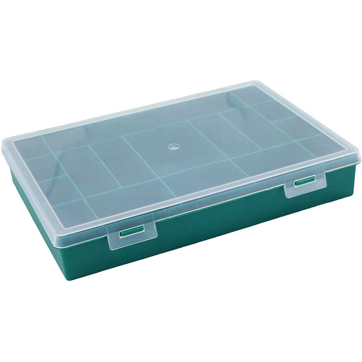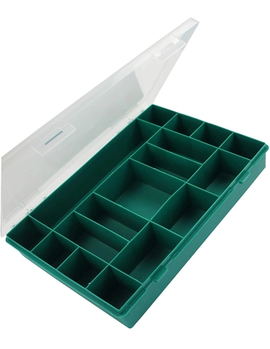 ESTUCHE CON SEPARADOR FIJO DE COLOR VERDE CON LA TAPA DE COLOR TRANSPARENTE - Nº13-17