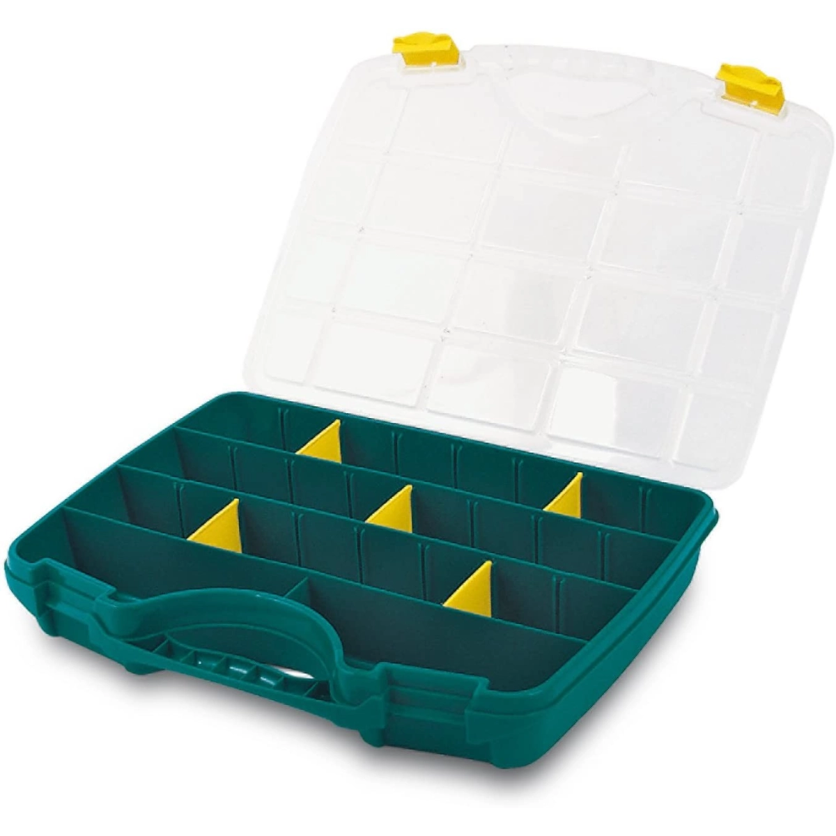 ESTUCHE CON SEPARADORES MOVILES DE COLOR VERDE CON LA TAPA DE COLOR TRANSPARENTE - Nº23-26